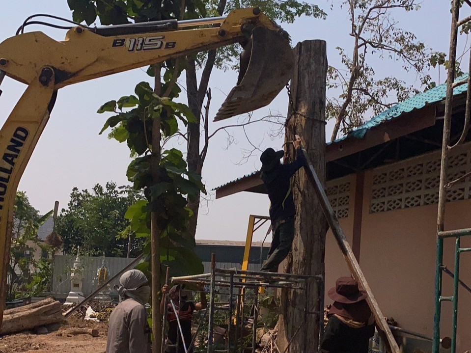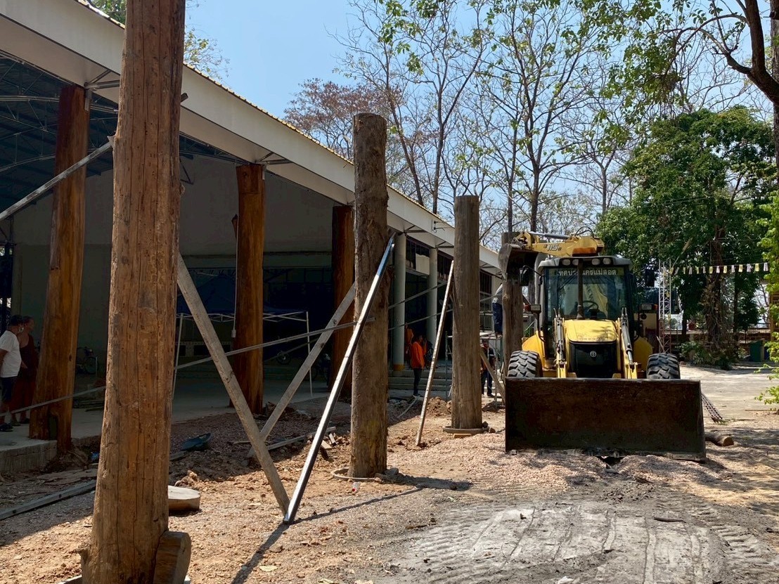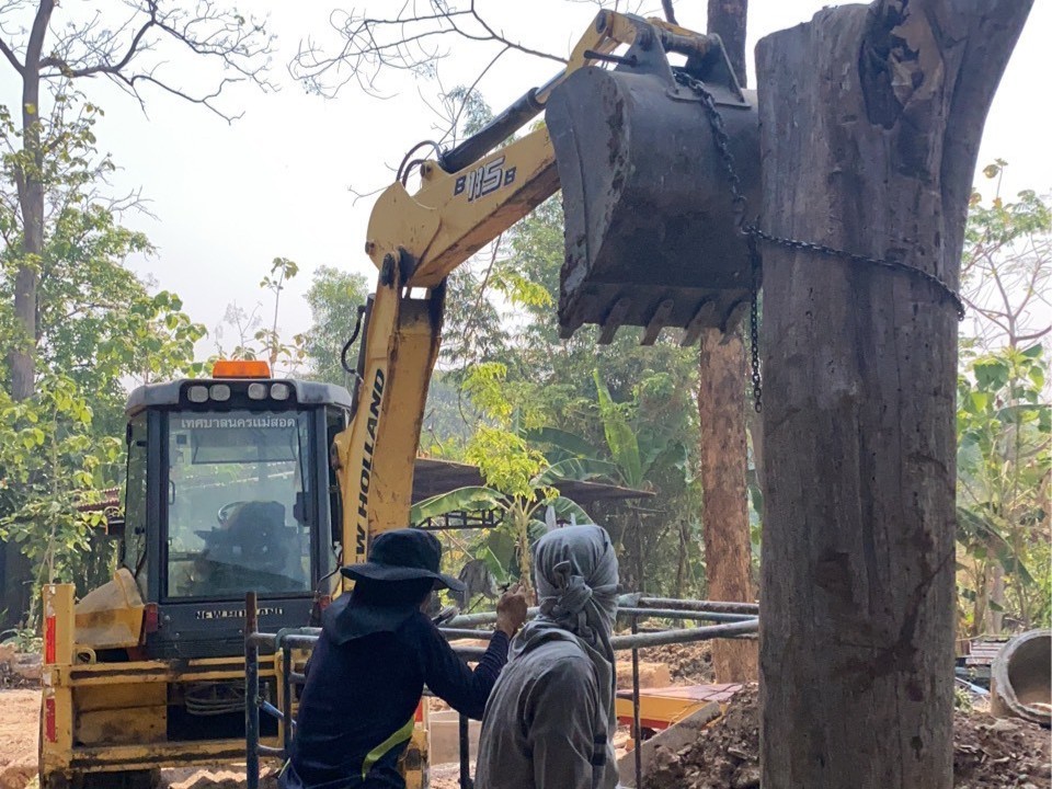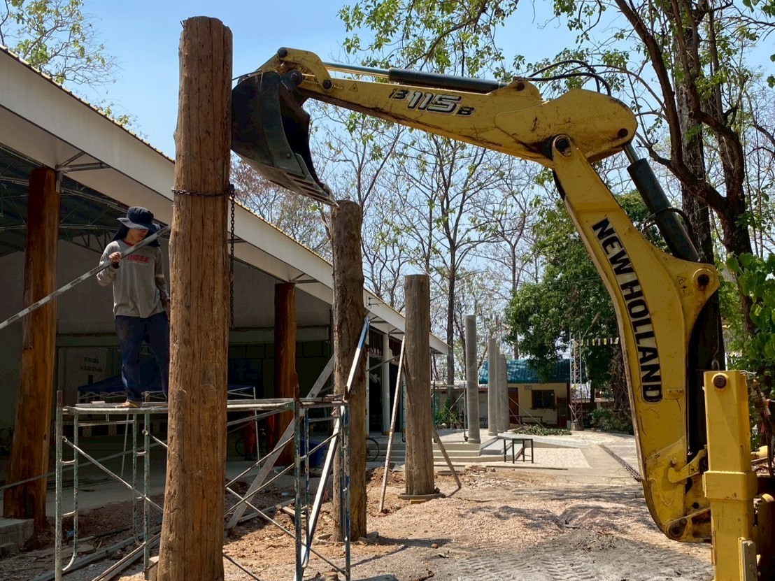 2. ได้ดำเนินการเคลื่อนย้าย/ตั้งเสาต้นสัก บริเวณวัดสักทองวนาราม ชุมชนสักทอง