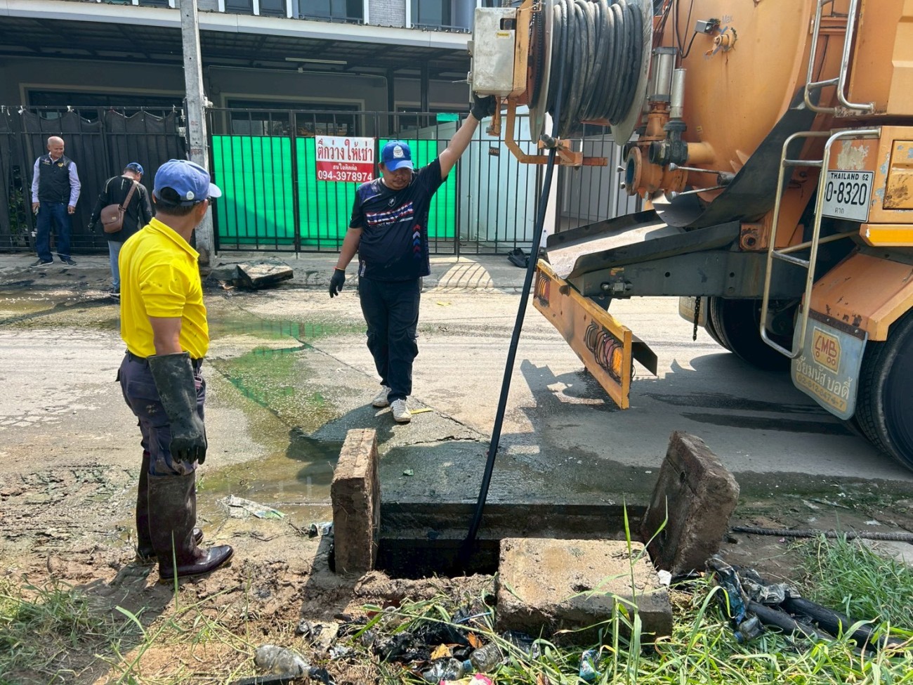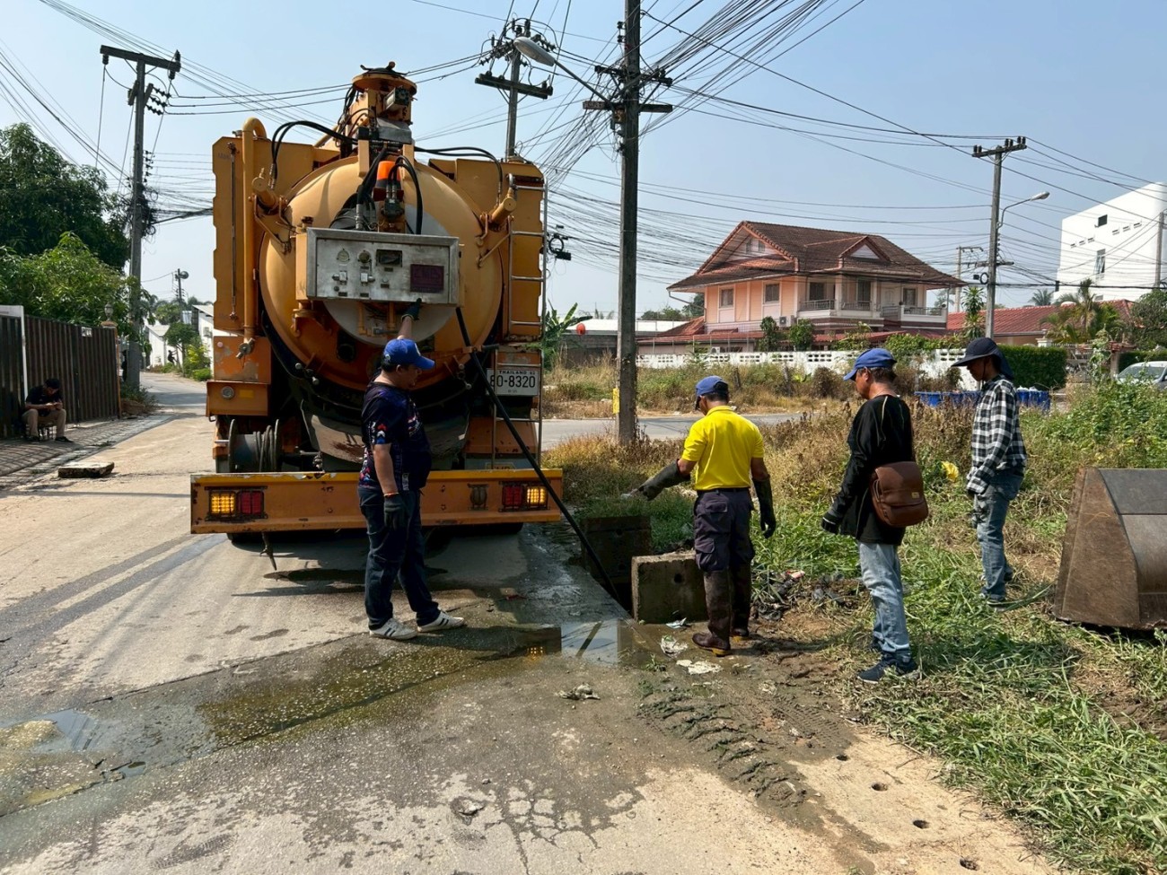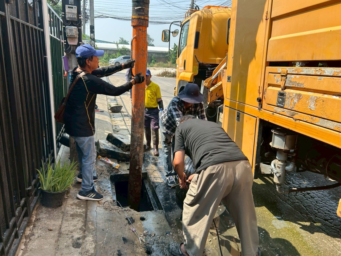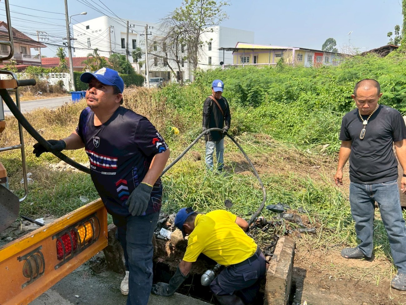 1. ได้ดำเนินการดูดโคลนลอกท่อระบายน้ำ บริเวณซอยสวนแสนพันธ์ ชุมชนร่วมแรง