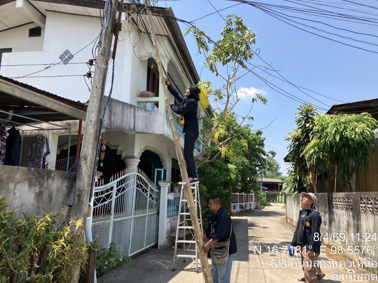เจ้าหน้าที่กองยุทธศาสตร์และงบประมาณ ดำเนินการตามคำร้องขอซ่อมแซมเคเบิ้ลทีวี ชุมชนสันต้นปิน