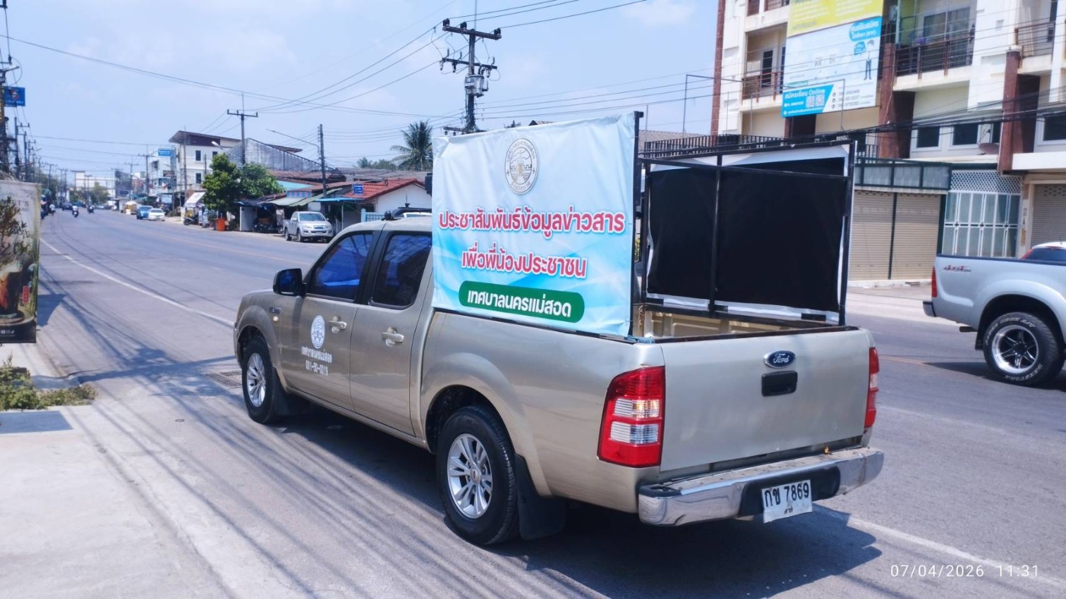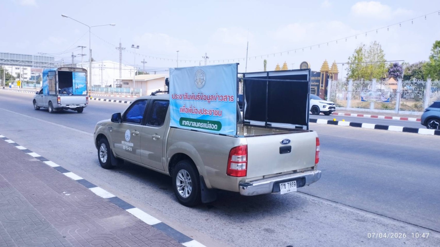 ว่าที่พันตรี ดร. ไพฑูรย์ ปริญญาธรรมกุล ผู้อำนวยการกองยุทธศาสตร์และงบประมาณ มอบหมายให้ นายสุธีร์ วิณิชชาศิริ พนักงานจ้างทั่วไป ฝ่ายวิเทศสัมพันธ์ นำรถออกประชาสัมพันธ์เคลื่อนที่งานประเพณีสงกรานต์ ประจำปี 2569 โดยประชาสัมพันธ์รอบพื้นที่เขตเทศบาลนครแม่สอด ตั้งแต่วันที่ 6 - 10 เมษายน 2569 เพื่อเชิญชวนให้เด็ก เยาวชน ประชาชนชาวแม่สอด นักท่องเที่ยว ร่วมกันออกมาเล่นน้ำสงกรานต์ และส่งเสริม สืบสาน อนุรักษ์วัฒนธรรมประเพณีของท้องถิ่นให้คงอยู่ต่อไป
