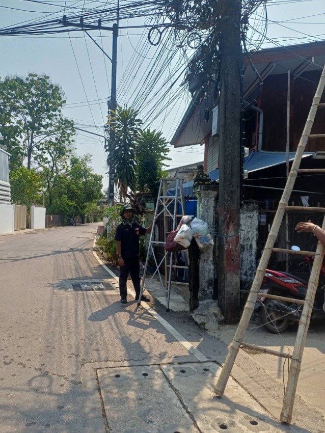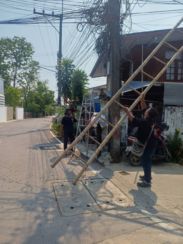 เจ้าหน้าที่กองยุทธศาสตร์และงบประมาณ ดำเนินการตามคำร้องขอซ่อมแซมเคเบิ้ลทีวี ชุมชนสองแคว1