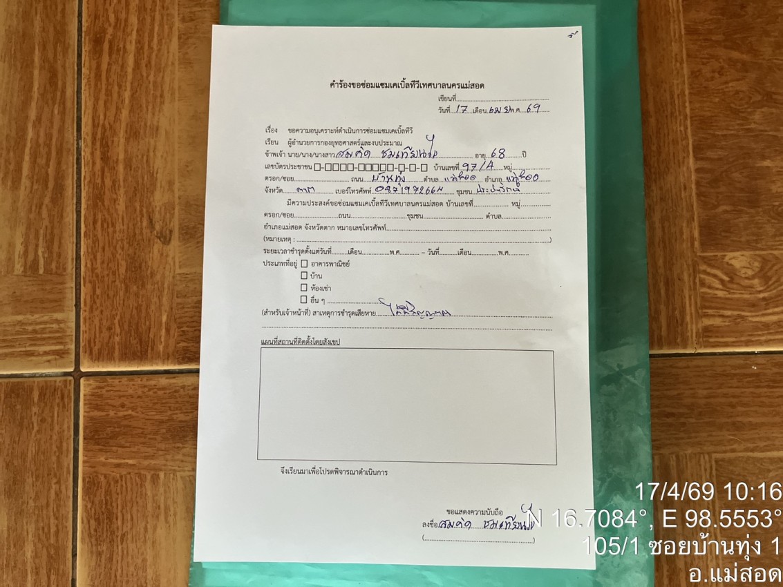 เจ้าหน้าที่กองยุทธศาสตร์และงบประมาณ ดำเนินการตามคำร้องขอซ่อมแซมเคเบิ้ลทีวี ชุมชนดอนไชย