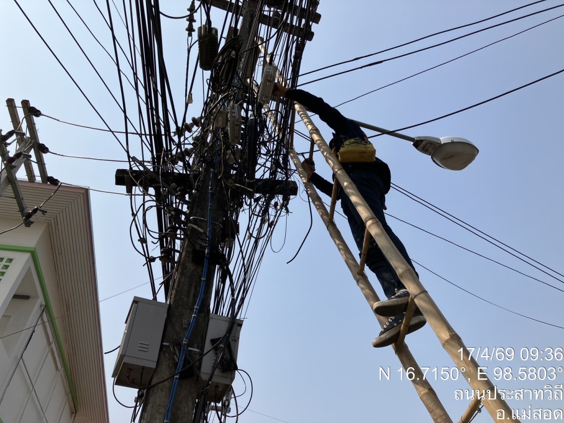 ว่าที่พันตรี ดร. ไพฑูรย์ ปริญญาธรรมกุล ผู้อำนวยการกองยุทธศาสตร์และงบประมาณ มอบหมายให้เจ้าหน้าที่ช่างเคเบิ้ลทีวีเพื่อการศึกษา เจ้าหน้าที่ฝ่ายวิเทศสัมพันธ์ กองยุทธศาสตร์และงบประมาณ ลงพื้นที่ดำเนินการซ่อมแซมเคเบิ้ลทีวีในเขตชุมชนดอนไชย เพื่อให้ประชาชนในชุมชนดังกล่าว สามารถกลับมารับชมบริการเคเบิ้ลทีวีเพื่อการศึกษาของเทศบาลแม่สอดได้ตามปกติ