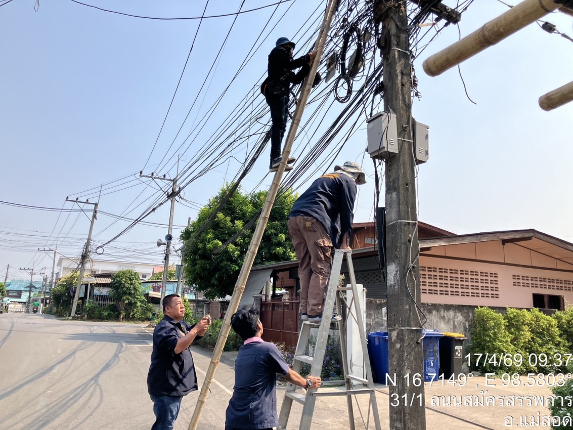 เจ้าหน้าที่กองยุทธศาสตร์และงบประมาณ ดำเนินการตามคำร้องขอซ่อมแซมเคเบิ้ลทีวี ชุมชนดอนไชย