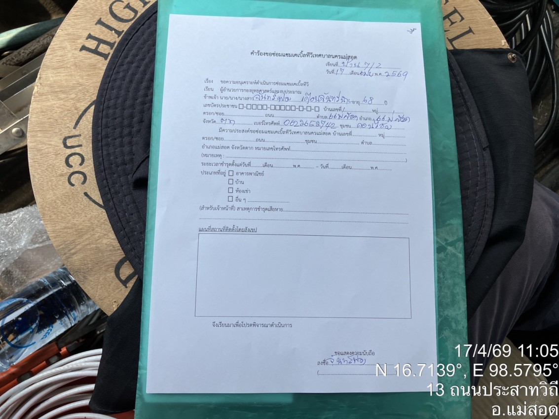 เจ้าหน้าที่กองยุทธศาสตร์และงบประมาณ ดำเนินการตามคำร้องขอซ่อมแซมเคเบิ้ลทีวี ชุมชนสองแคว1