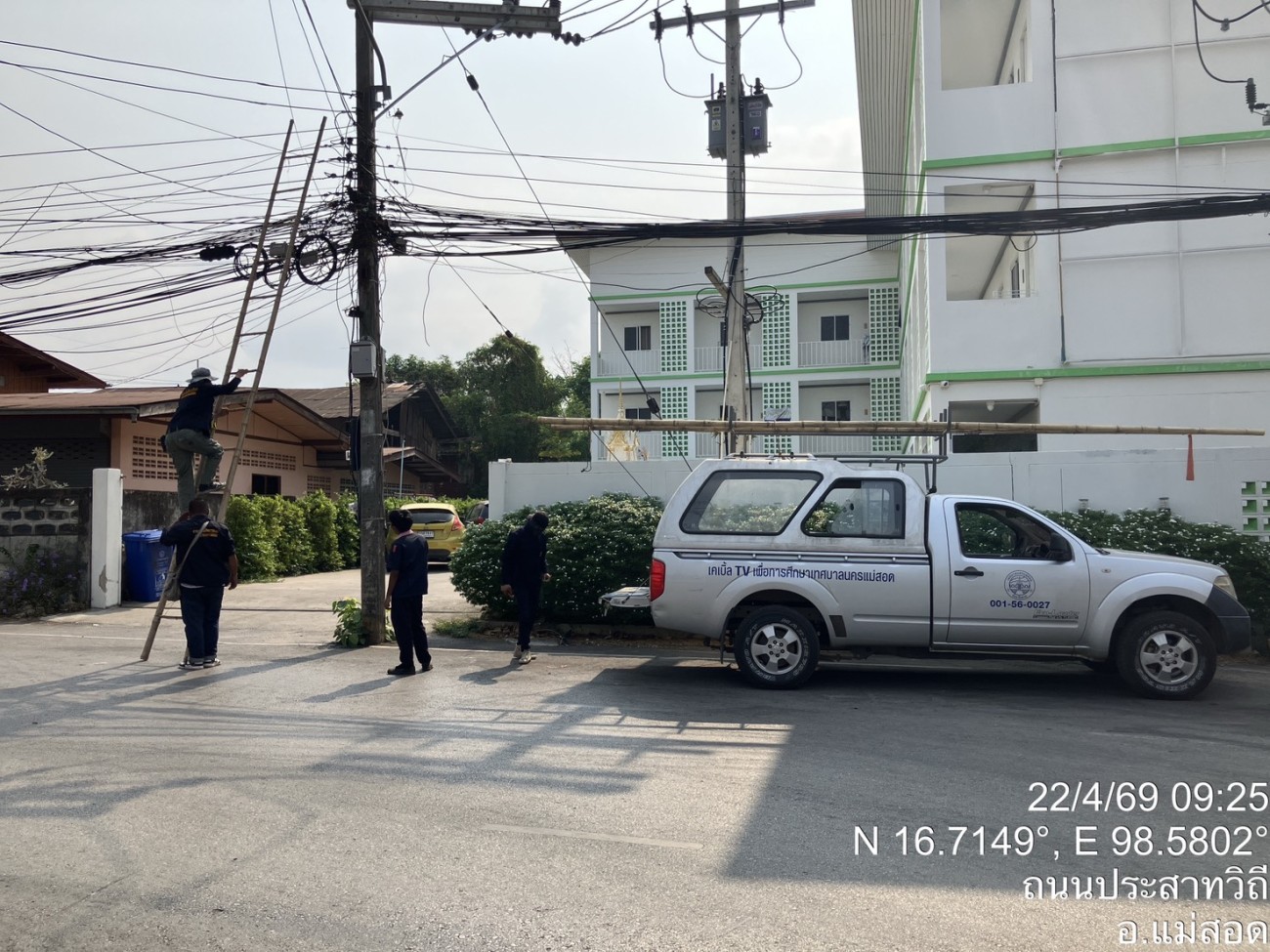 ว่าที่พันตรี ดร. ไพฑูรย์ ปริญญาธรรมกุล ผู้อำนวยการกองยุทธศาสตร์และงบประมาณ มอบหมายให้เจ้าหน้าที่ช่างเคเบิ้ลทีวีเพื่อการศึกษา เจ้าหน้าที่ฝ่ายวิเทศสัมพันธ์ กองยุทธศาสตร์และงบประมาณ ลงพื้นที่ดำเนินการซ่อมแซมเคเบิ้ลทีวีในเขตชุมชนดอนไชย เพื่อให้ประชาชนในชุมชนดังกล่าว สามารถกลับมารับชมบริการเคเบิ้ลทีวีเพื่อการศึกษาของเทศบาลแม่สอดได้ตามปกติ