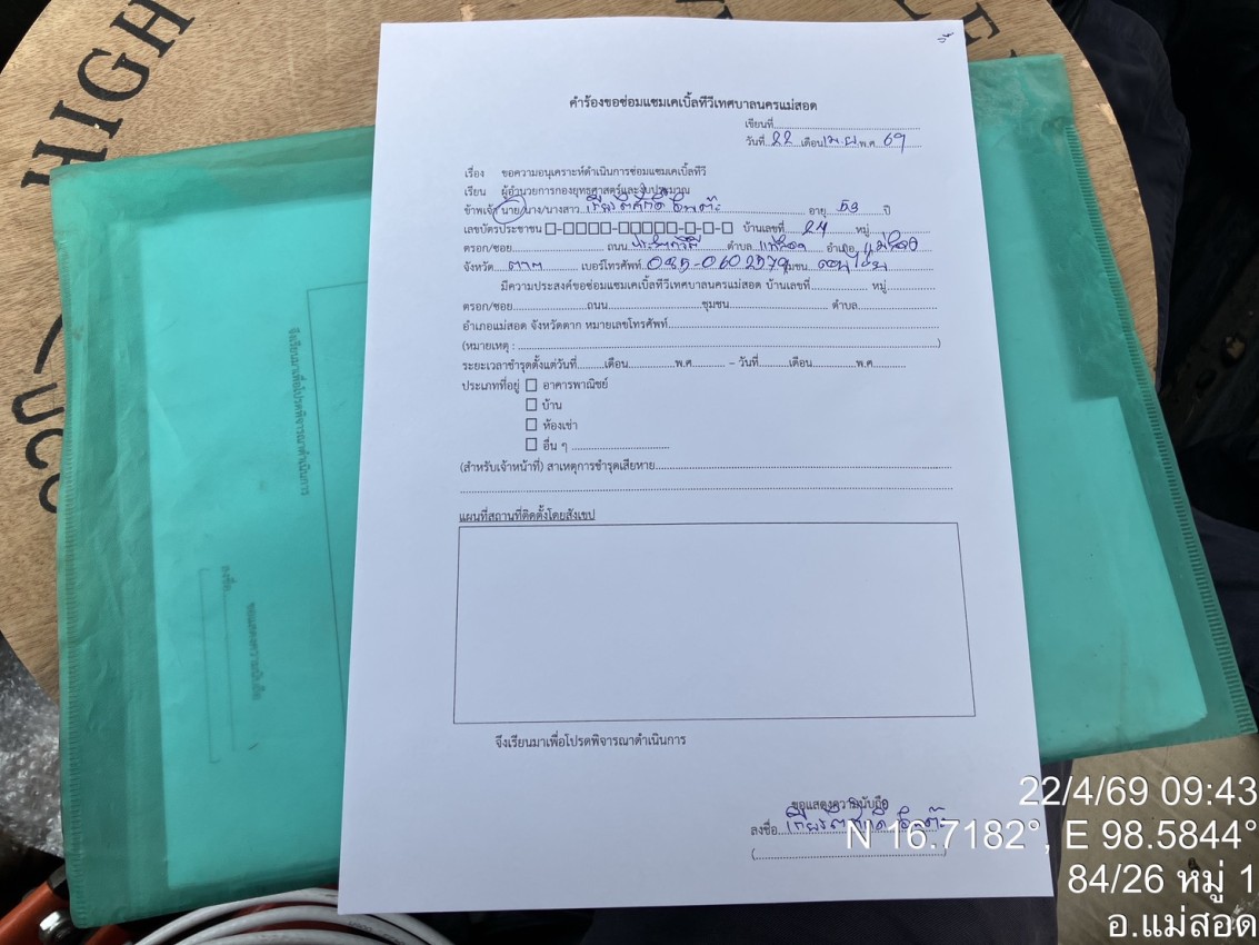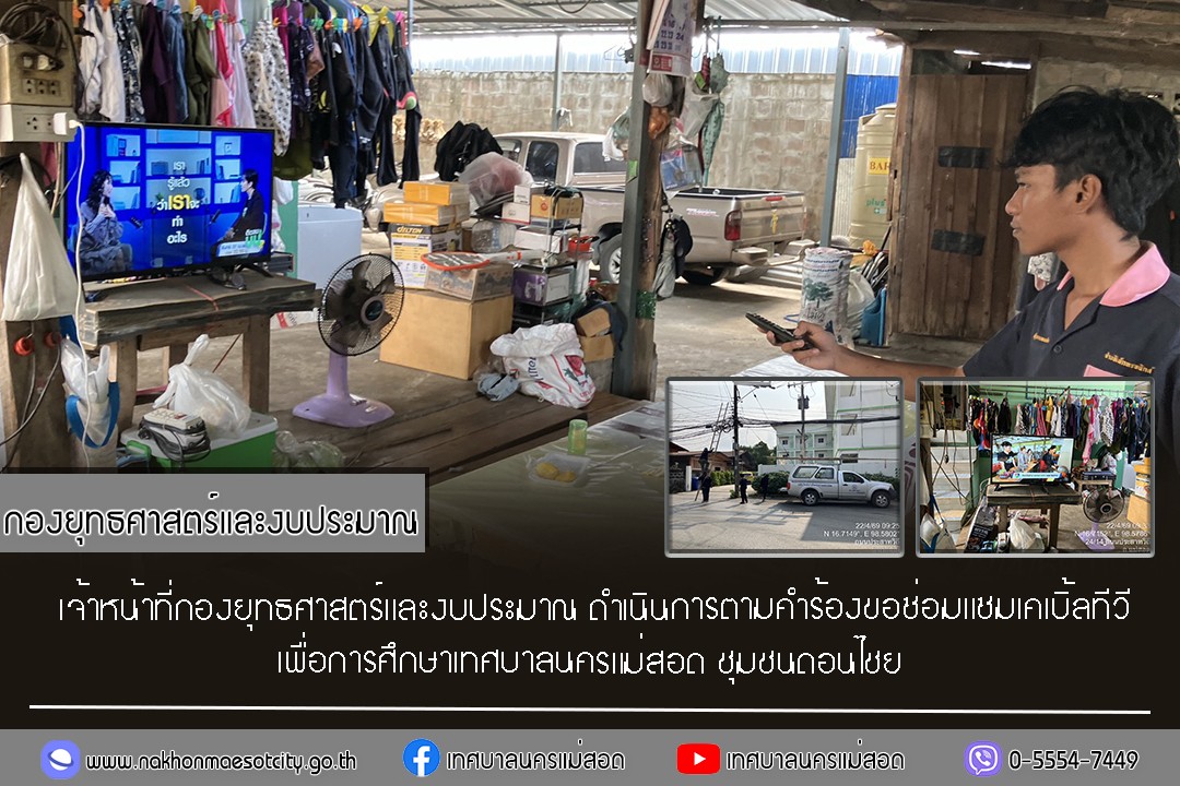 เจ้าหน้าที่กองยุทธศาสตร์และงบประมาณ ดำเนินการตามคำร้องขอซ่อมแซมเคเบิ้ลทีวี ชุมชนดอนไชย