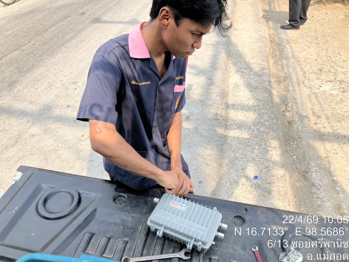 เจ้าหน้าที่กองยุทธศาสตร์และงบประมาณ ดำเนินการตามคำร้องขอซ่อมแซมเคเบิ้ลทีวี ชุมชนดอนไชย
