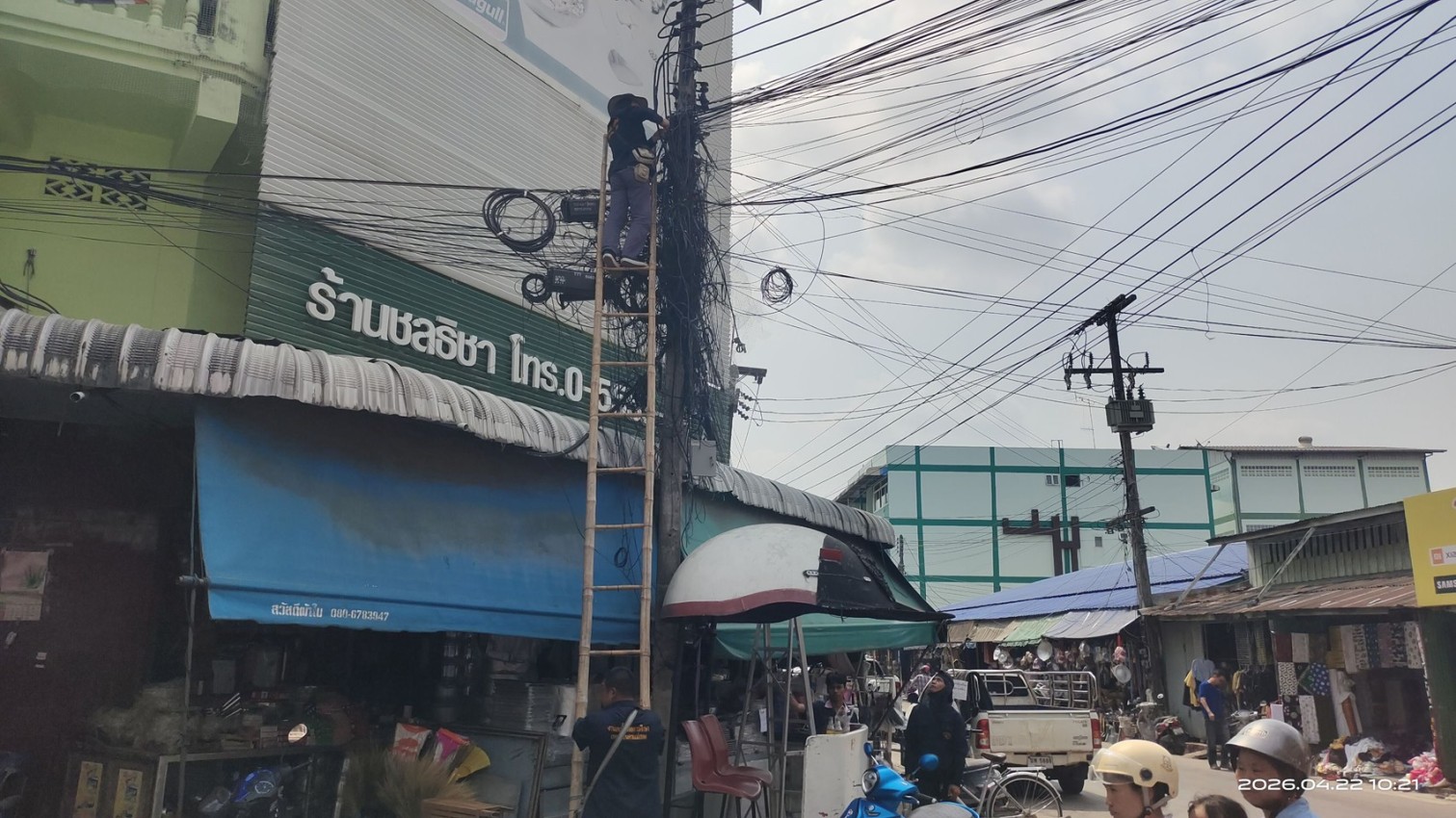 เจ้าหน้าที่กองยุทธศาสตร์และงบประมาณ ดำเนินการตามคำร้องขอซ่อมแซมเคเบิ้ลทีวี ชุมชนสองแคว1