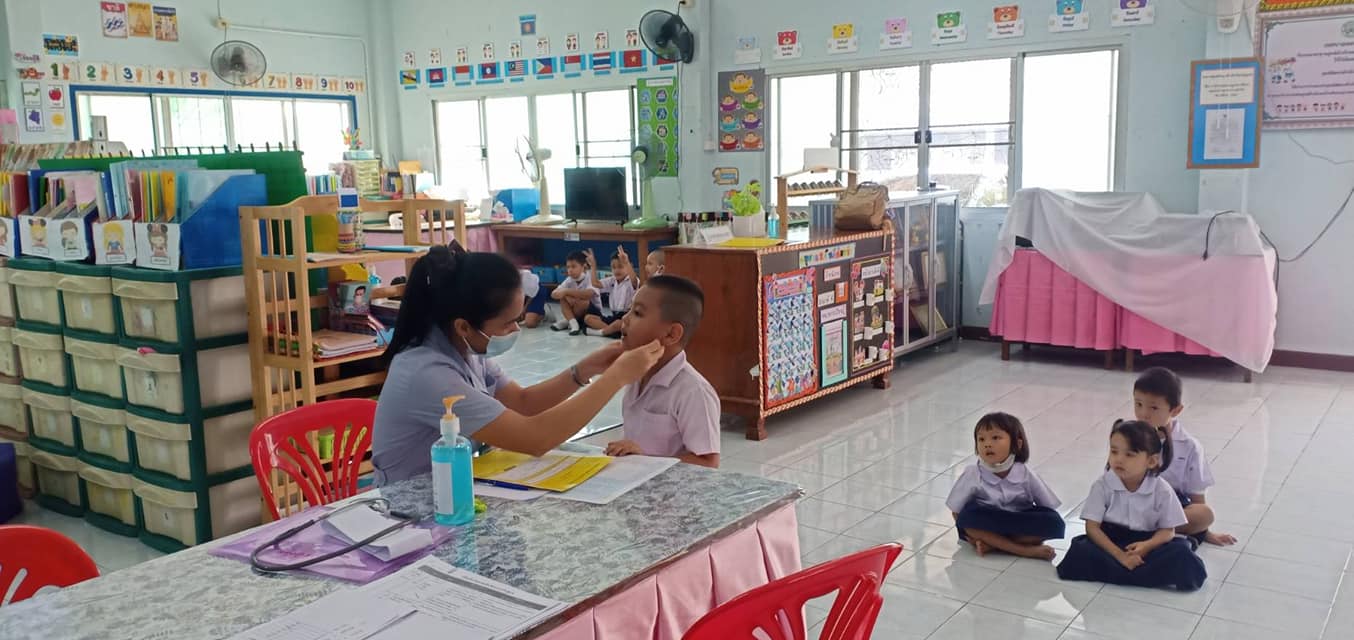 วันที่ 24 พฤศจิกายน 2563 กองสาธารณสุขและสิ่งแวดล้อม โดยคลินิกชุมชนอบอุ่น ออกให้บริการตรวจสุขภาพเด็กปฐมวัยในศูนย์พัฒนาเด็กเล็ก ณ ศูนย์พัฒนาเด็กเล็กวัดอรัญญเขต โดยจะให้บริการตรวจสุขภาพเบื้องต้น ประเมินภาวะโภชนาการ ประเมินพัฒนาการ ตรวจสุขภาพช่องปาก และฟันให้กับเด็กนักเรียน