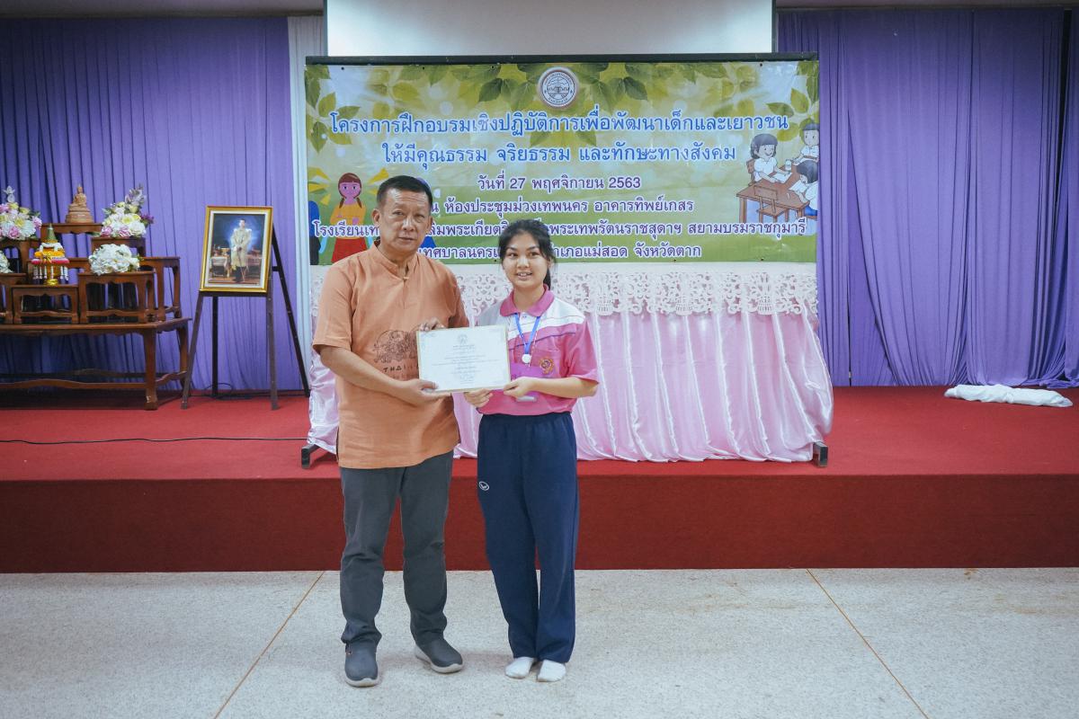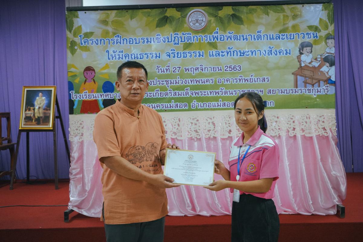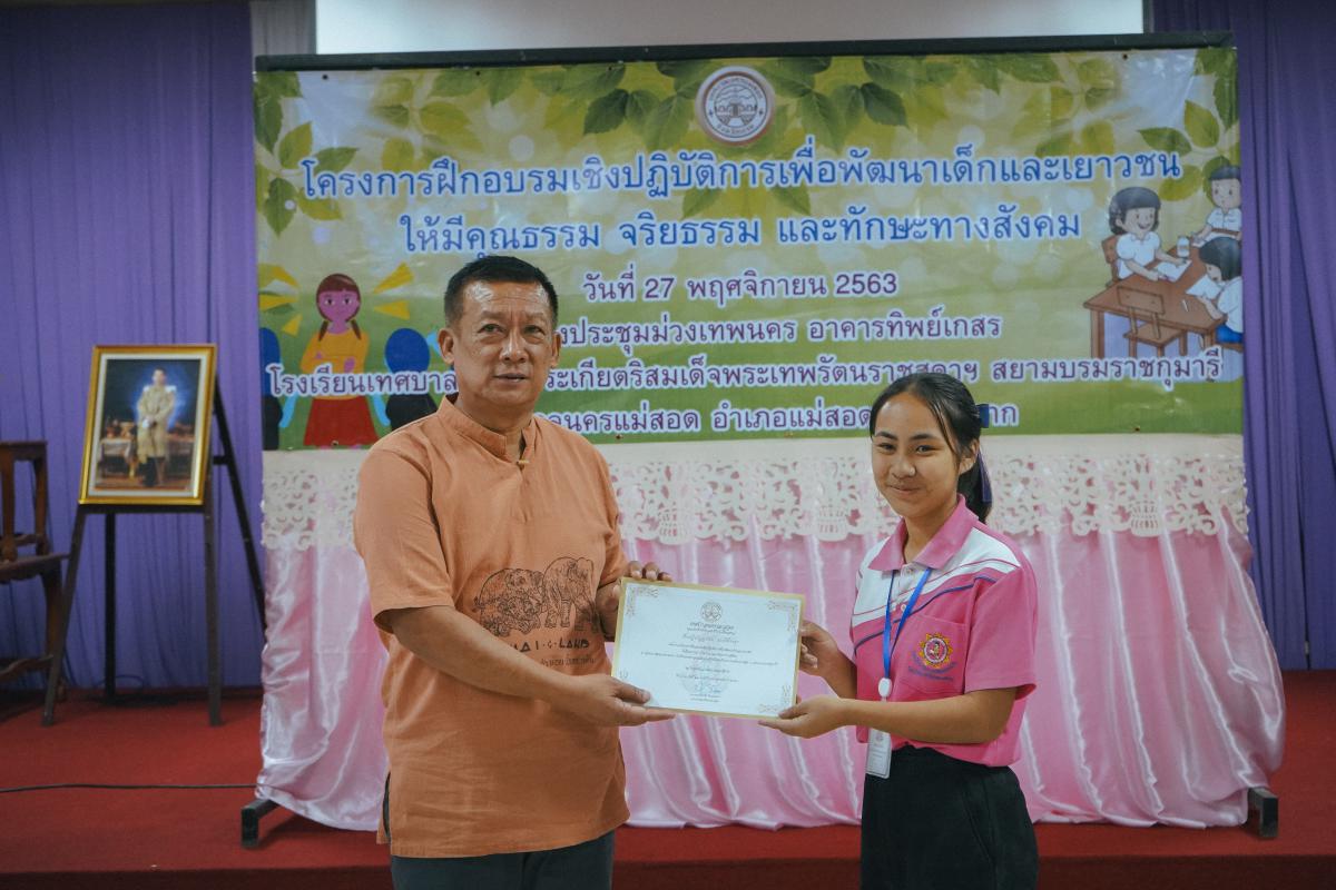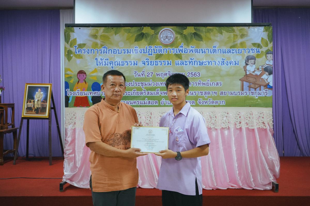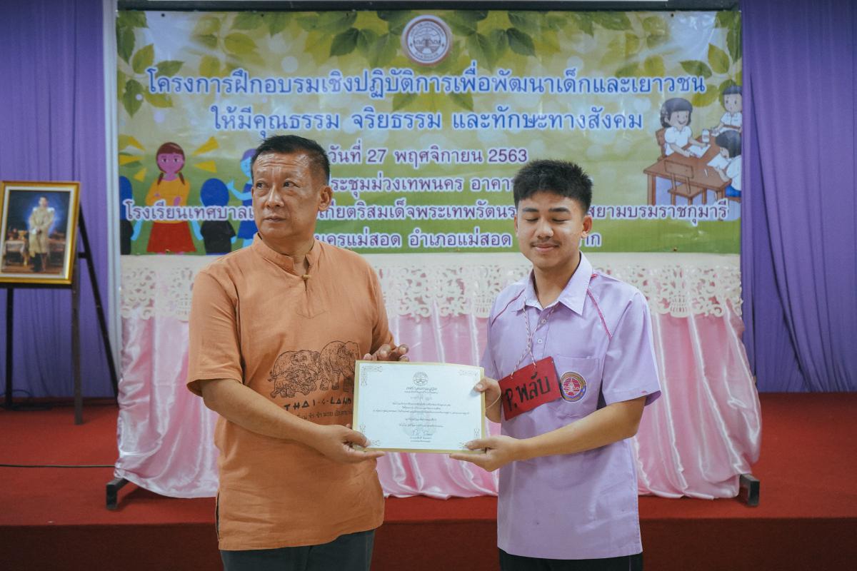 การจัดโครงการฝึกอบรมเชิงปฏิบัติการเพื่อพัฒนาเด็กและเยาวชนให้มีคุณธรรม จริยธรรม และทักษะทางสังคม มีวัตถุประสงค์เพื่อส่งเสริมคุณค่าและส่งเสริมศักยภาพเด็กและเยาวชนผู้เป็นกำลังสำคัญในการพัฒนาชาติ โดยมีกลุ่มเป้าหมายคือสภาเด็กและเยาวชนเทศบาลนครแม่สอด เด็กและเยาวชนในเขตเทศบาลนครแม่สอด รวมทั้งสิ้น 58 คน