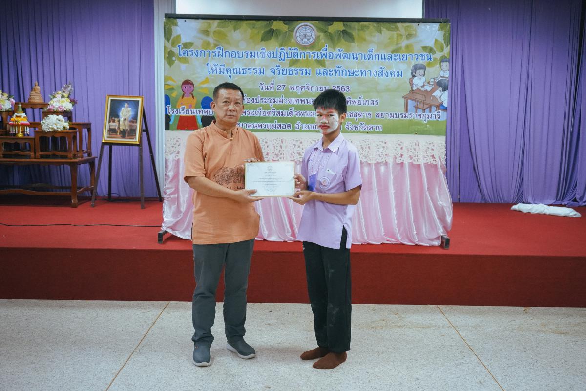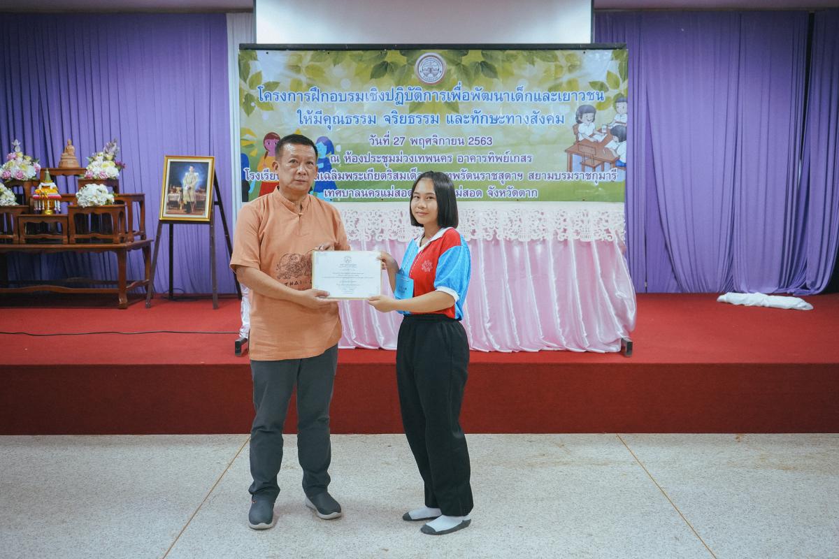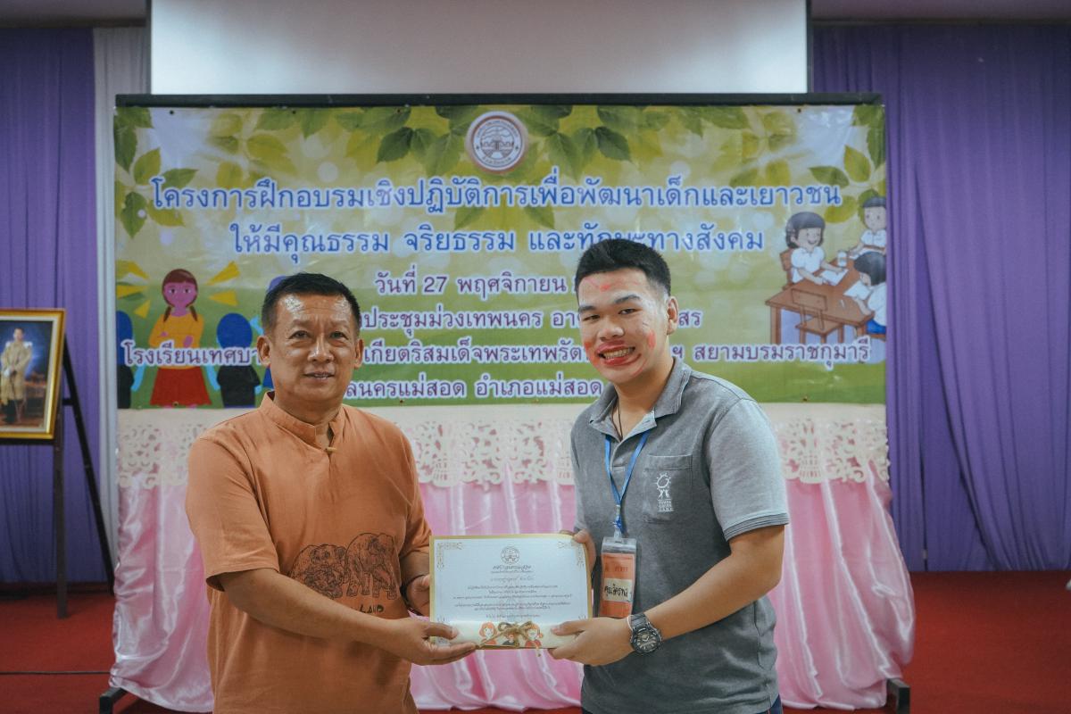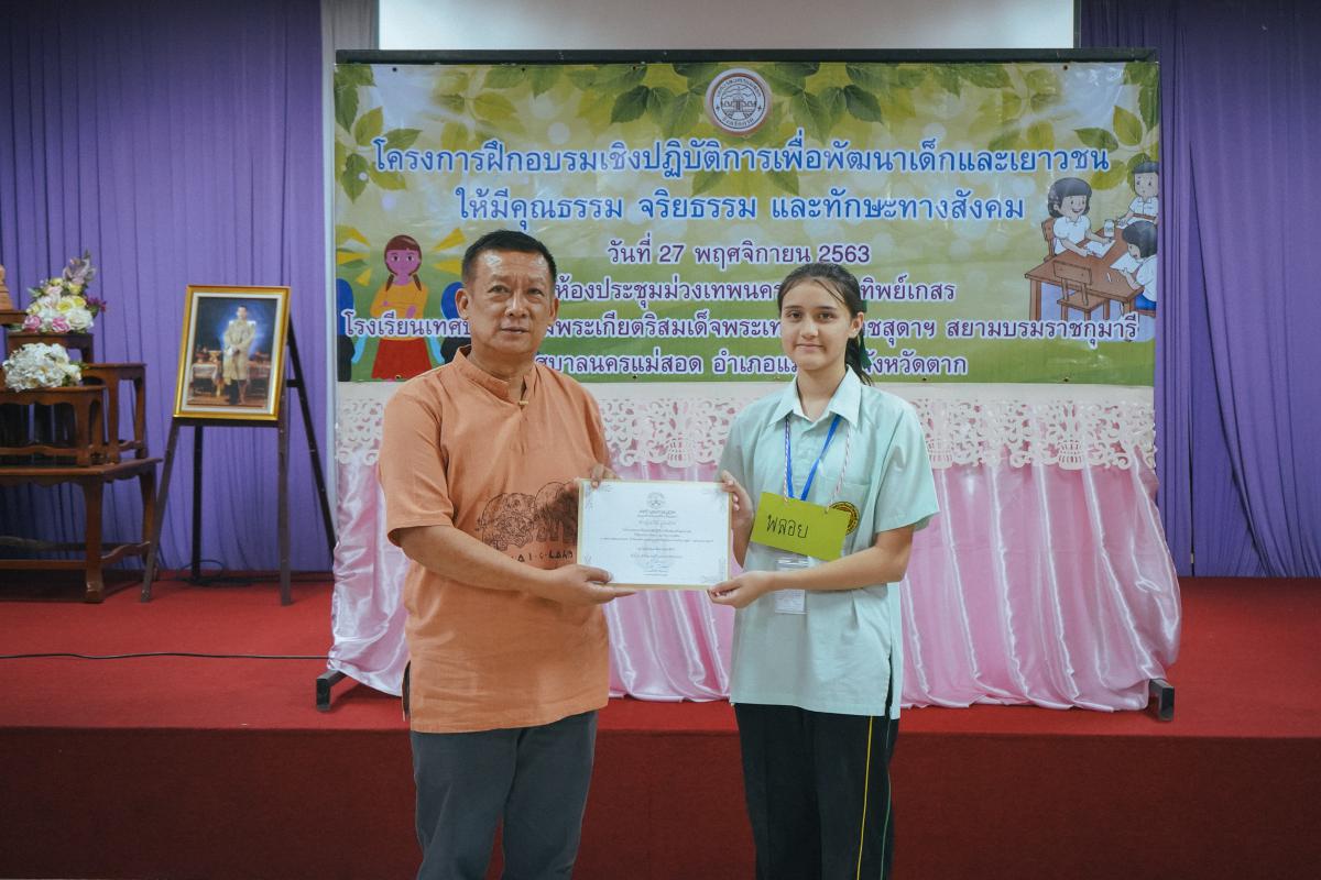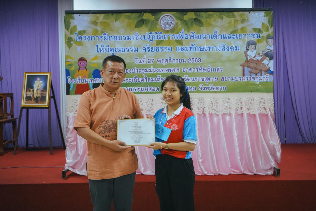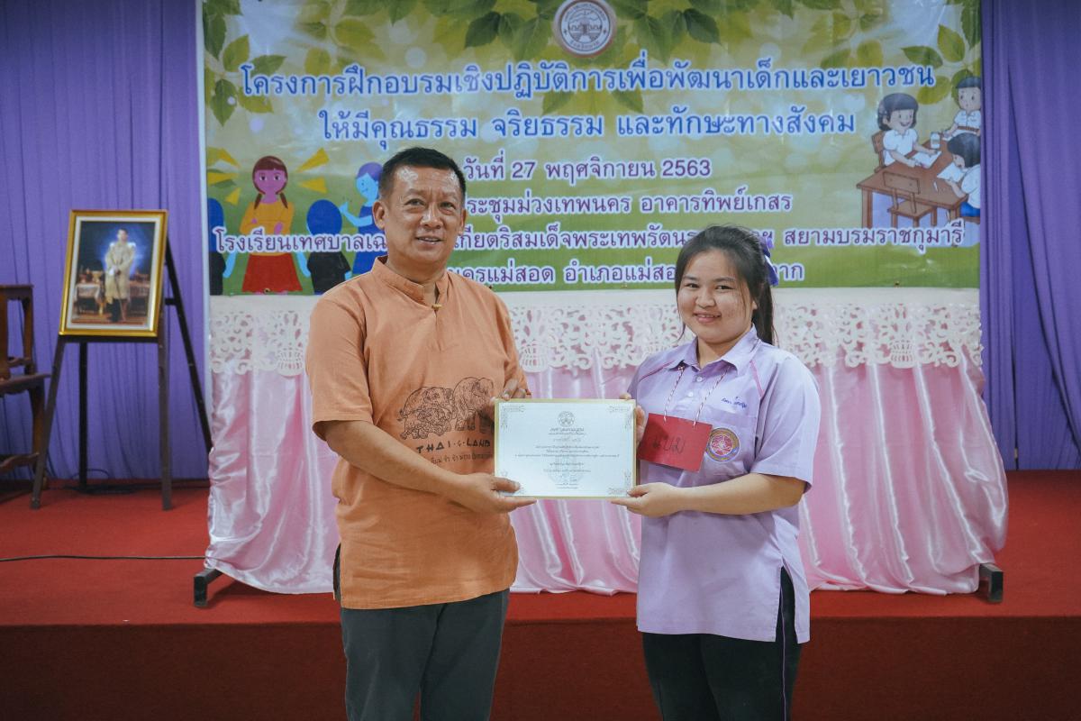 การจัดโครงการฝึกอบรมเชิงปฏิบัติการเพื่อพัฒนาเด็กและเยาวชนให้มีคุณธรรม จริยธรรม และทักษะทางสังคม มีวัตถุประสงค์เพื่อส่งเสริมคุณค่าและส่งเสริมศักยภาพเด็กและเยาวชนผู้เป็นกำลังสำคัญในการพัฒนาชาติ โดยมีกลุ่มเป้าหมายคือสภาเด็กและเยาวชนเทศบาลนครแม่สอด เด็กและเยาวชนในเขตเทศบาลนครแม่สอด รวมทั้งสิ้น 58 คน