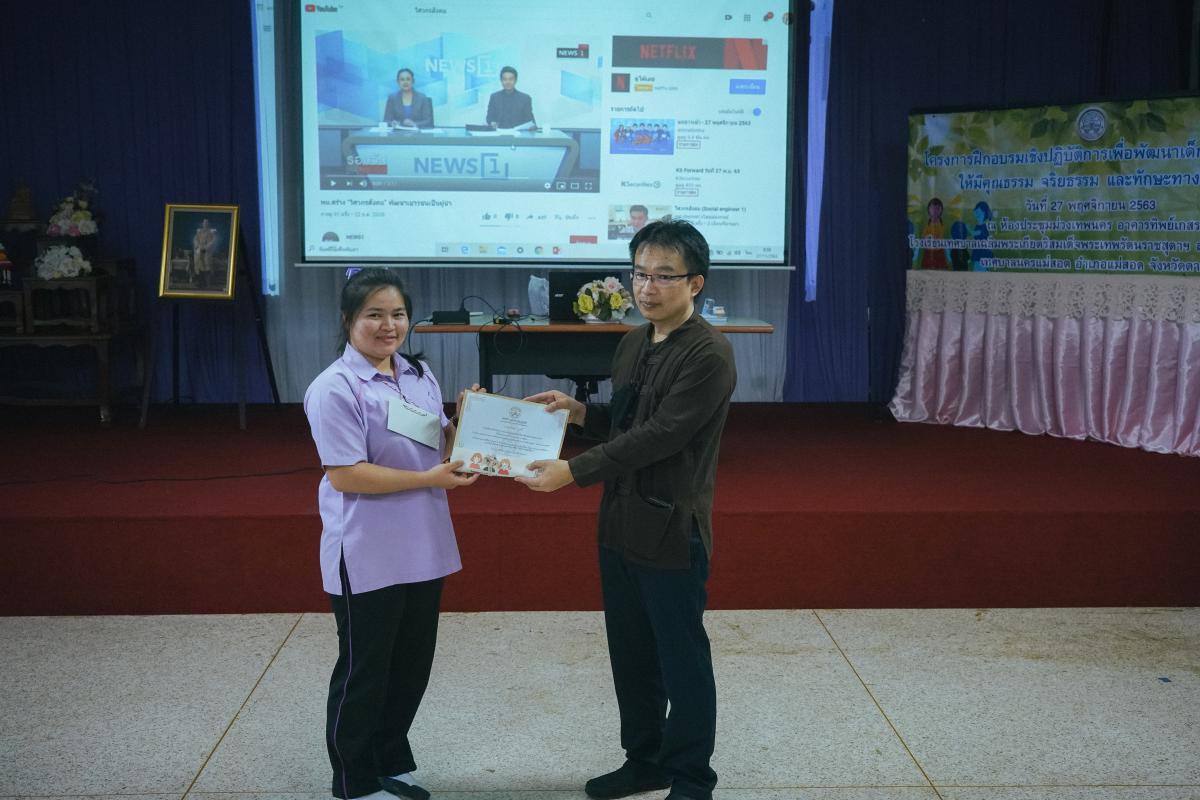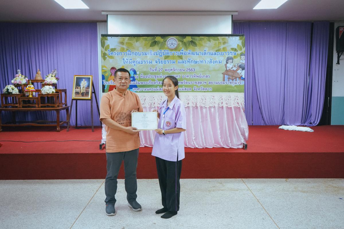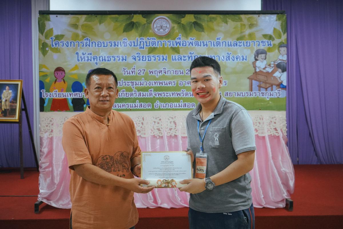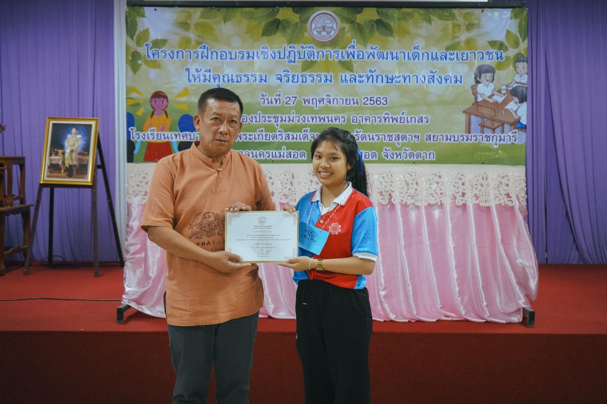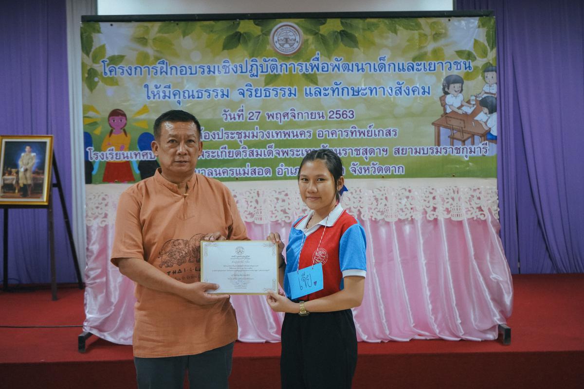 การจัดโครงการฝึกอบรมเชิงปฏิบัติการเพื่อพัฒนาเด็กและเยาวชนให้มีคุณธรรม จริยธรรม และทักษะทางสังคม มีวัตถุประสงค์เพื่อส่งเสริมคุณค่าและส่งเสริมศักยภาพเด็กและเยาวชนผู้เป็นกำลังสำคัญในการพัฒนาชาติ โดยมีกลุ่มเป้าหมายคือสภาเด็กและเยาวชนเทศบาลนครแม่สอด เด็กและเยาวชนในเขตเทศบาลนครแม่สอด รวมทั้งสิ้น 58 คน
