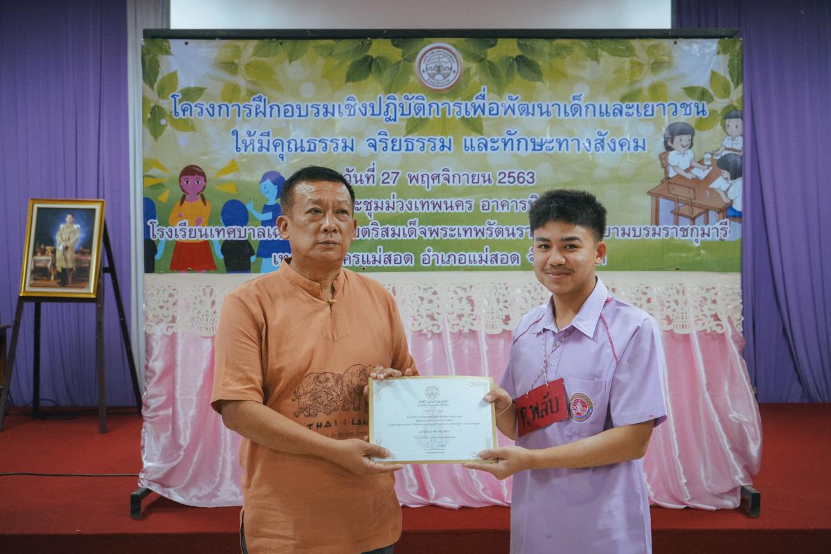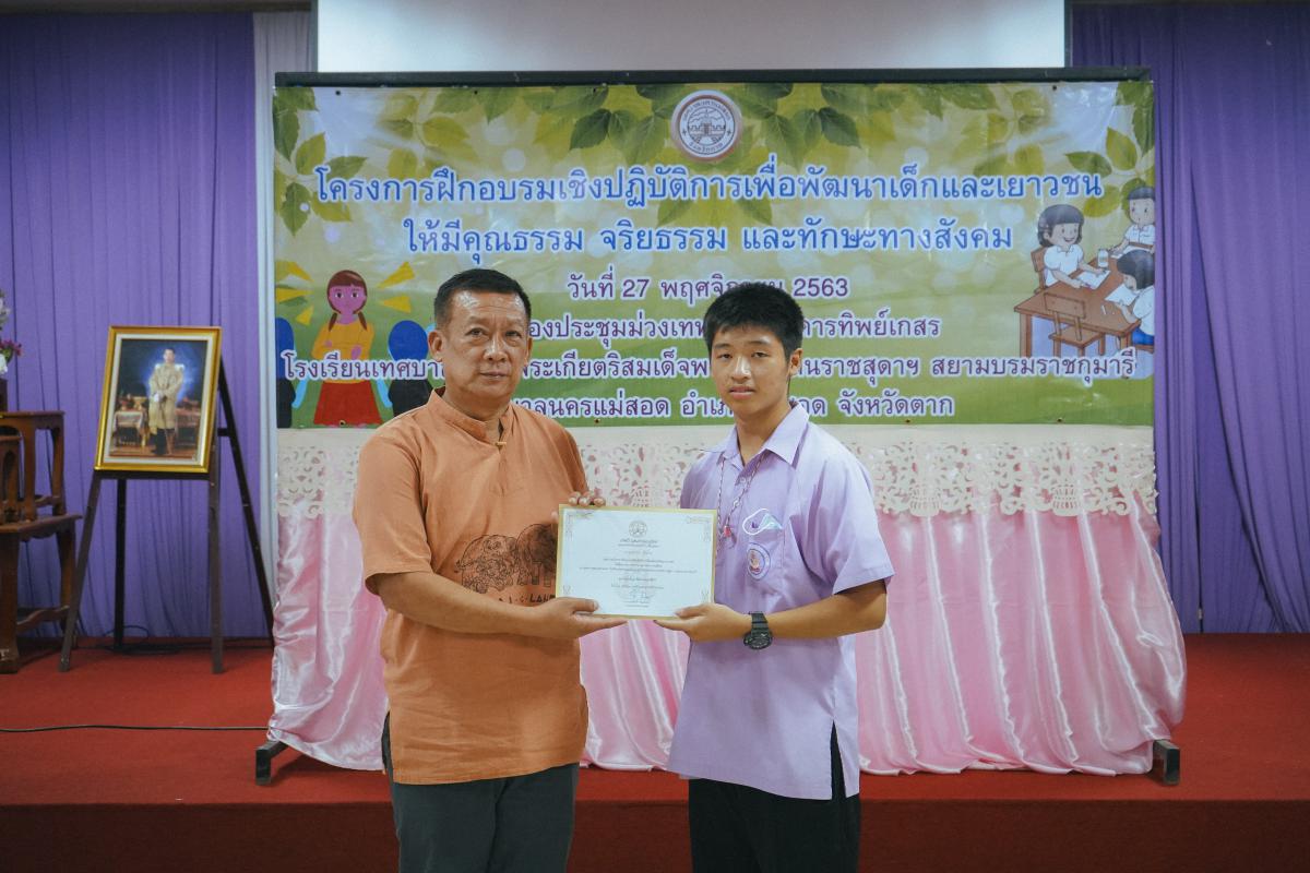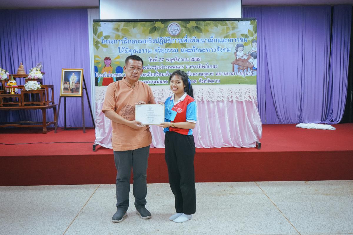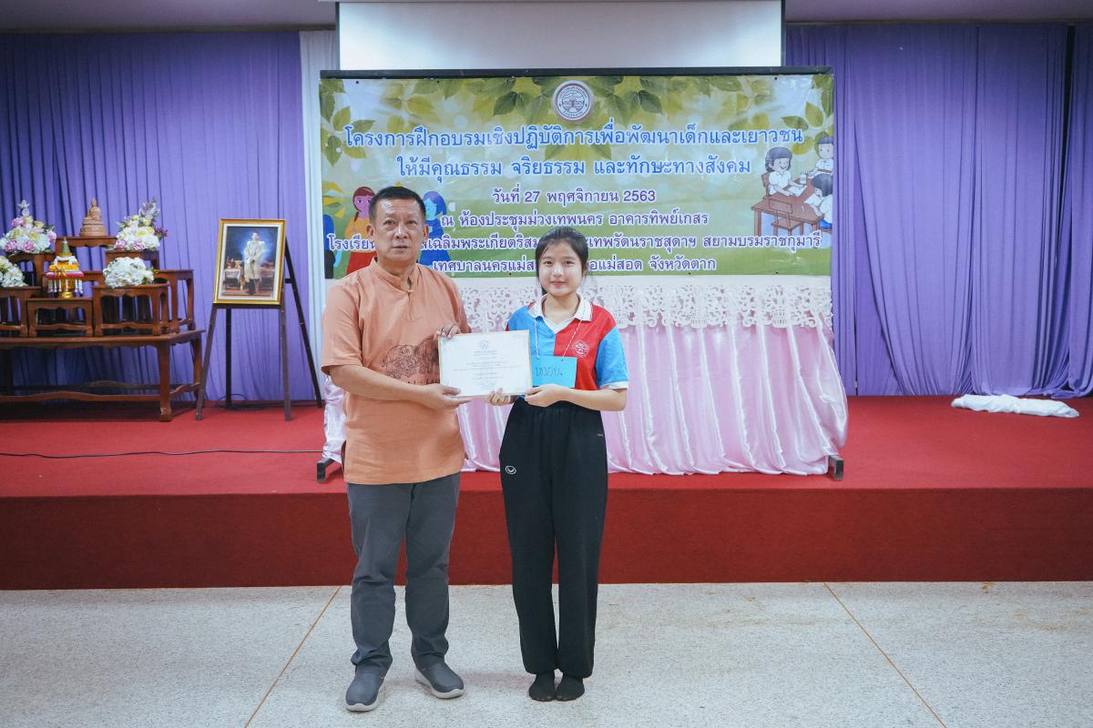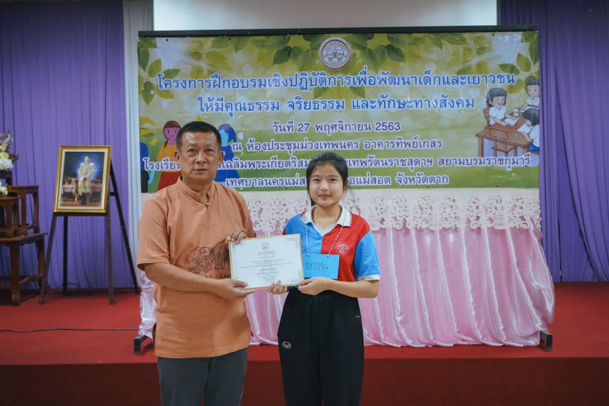 วันที่ 27 พฤศจิกายน 2563 เวลา 08.30 น. ณ ห้องประชุมม่วงเทพนคร โรงเรียนเทศบาลเฉลิมพระเกียรติสมเด็จพระเทพรัตนราชสุดา ฯ สยามบรมราชกุมารี สภาเด็กและเยาชนเทศบาลนครแม่สอดร่วมกับเทศบาลนครแม่สอดจัดโครงการฝึกอบรมเชิงปฏิบัติการเพื่อพัฒนาเด็กและเยาวชนให้มีคุณธรรม จริยธรรม และทักษะทางสังคม โดยนายกเทศมนตรีนครแม่สอดมอบหมายให้กนายพีระ วงค์หมอ ผู้อำนวยการกองการศึกษาเป้นประธานในพิธีเปิด พร้อมด้วยผู้บริหารสถานศึกษา เจ้าหน้าที่กองการศึกษาร่วมพิธีเปิดโครงการ
