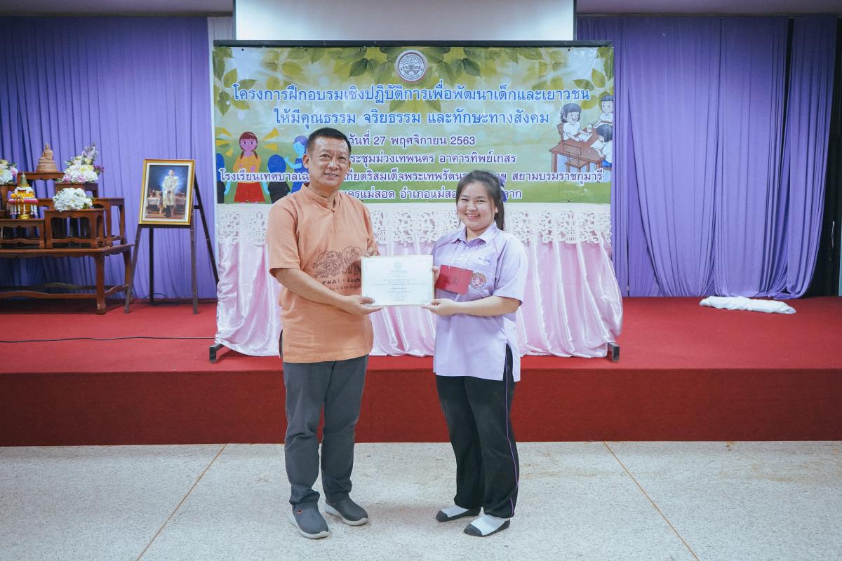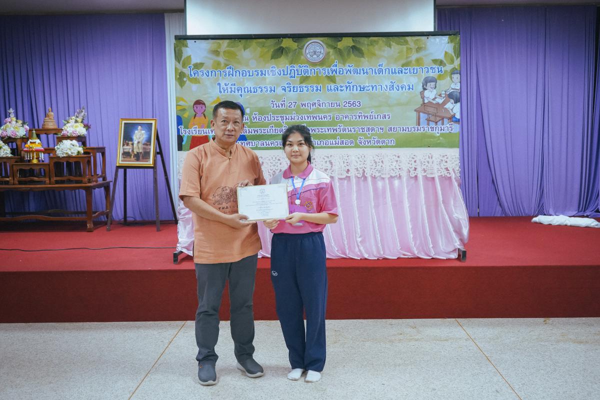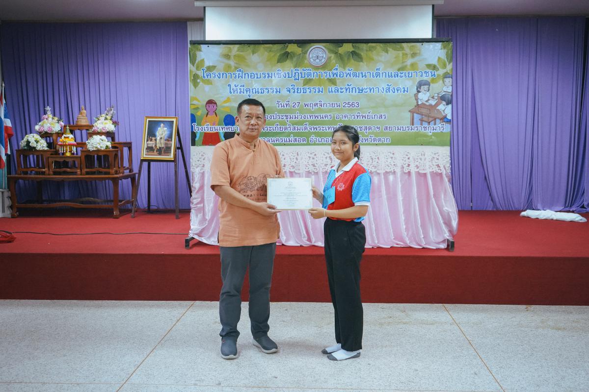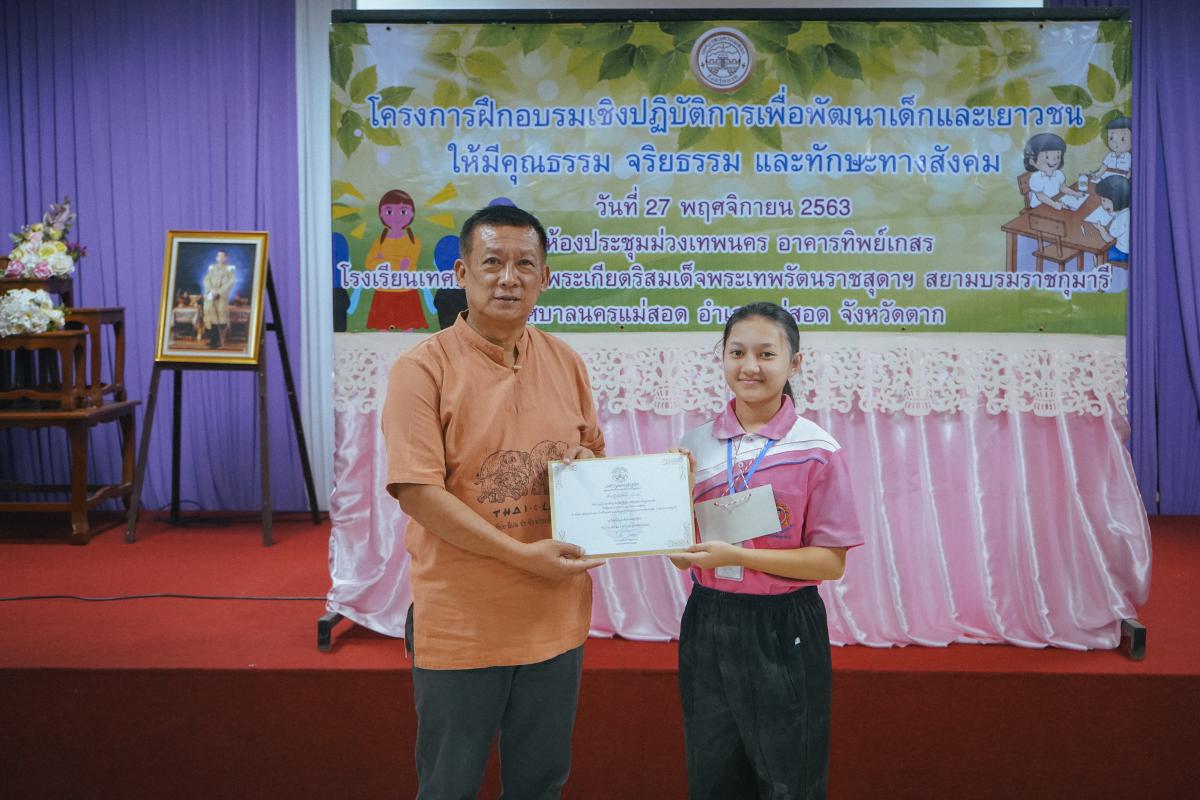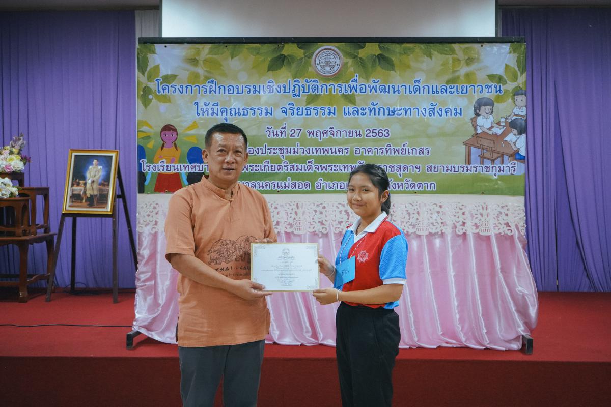 วันที่ 27 พฤศจิกายน 2563 เวลา 08.30 น. ณ ห้องประชุมม่วงเทพนคร โรงเรียนเทศบาลเฉลิมพระเกียรติสมเด็จพระเทพรัตนราชสุดา ฯ สยามบรมราชกุมารี สภาเด็กและเยาชนเทศบาลนครแม่สอดร่วมกับเทศบาลนครแม่สอดจัดโครงการฝึกอบรมเชิงปฏิบัติการเพื่อพัฒนาเด็กและเยาวชนให้มีคุณธรรม จริยธรรม และทักษะทางสังคม โดยนายกเทศมนตรีนครแม่สอดมอบหมายให้กนายพีระ วงค์หมอ ผู้อำนวยการกองการศึกษาเป้นประธานในพิธีเปิด พร้อมด้วยผู้บริหารสถานศึกษา เจ้าหน้าที่กองการศึกษาร่วมพิธีเปิดโครงการ