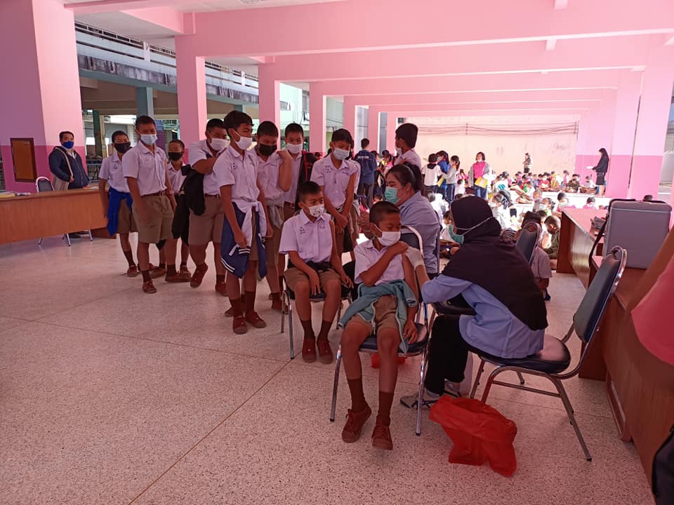 คลินิกชุมชนอบอุ่นเทศบาลนครแม่สอด ออกให้บริการตรวจเด็กนักเรียนชั้นประถมศึกษาปีที่1-ชั้นมัธยมศึกษาปี่ที่1 โรงเรียนเทศบาลวัดดอนแก้ว โดยตรวจประเมินภาวะโภชนาการ ประเมินสุขภาพช่องปาก และฉีดวัคซีนสร้างเสริมภูมิคุ้มกันโรคคอตีบ บาดทะยัก หัด หัดเยอรมัน คางทูม ไข้สมองอักเสบ พร้อมทั้งให้ความรู้สุขศึกษาเกี่ยวกับการดูแลสุขภาพเบื้องต้นให้กับกลุ่มนักเรียนดังกล่าว