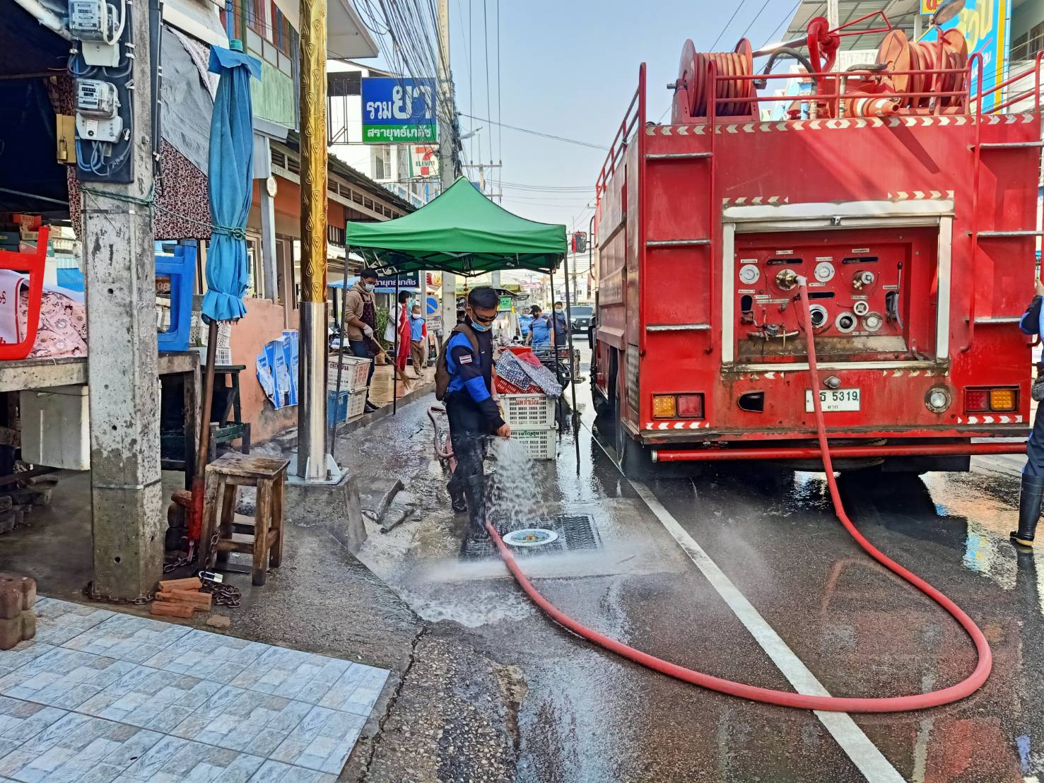 เทศบาลนครแม่สอด ลงพื้นที่ดำเนินการฉีดล้างทำความสะอาด ตลาดในเขตเทศบาลนครแม่สอด