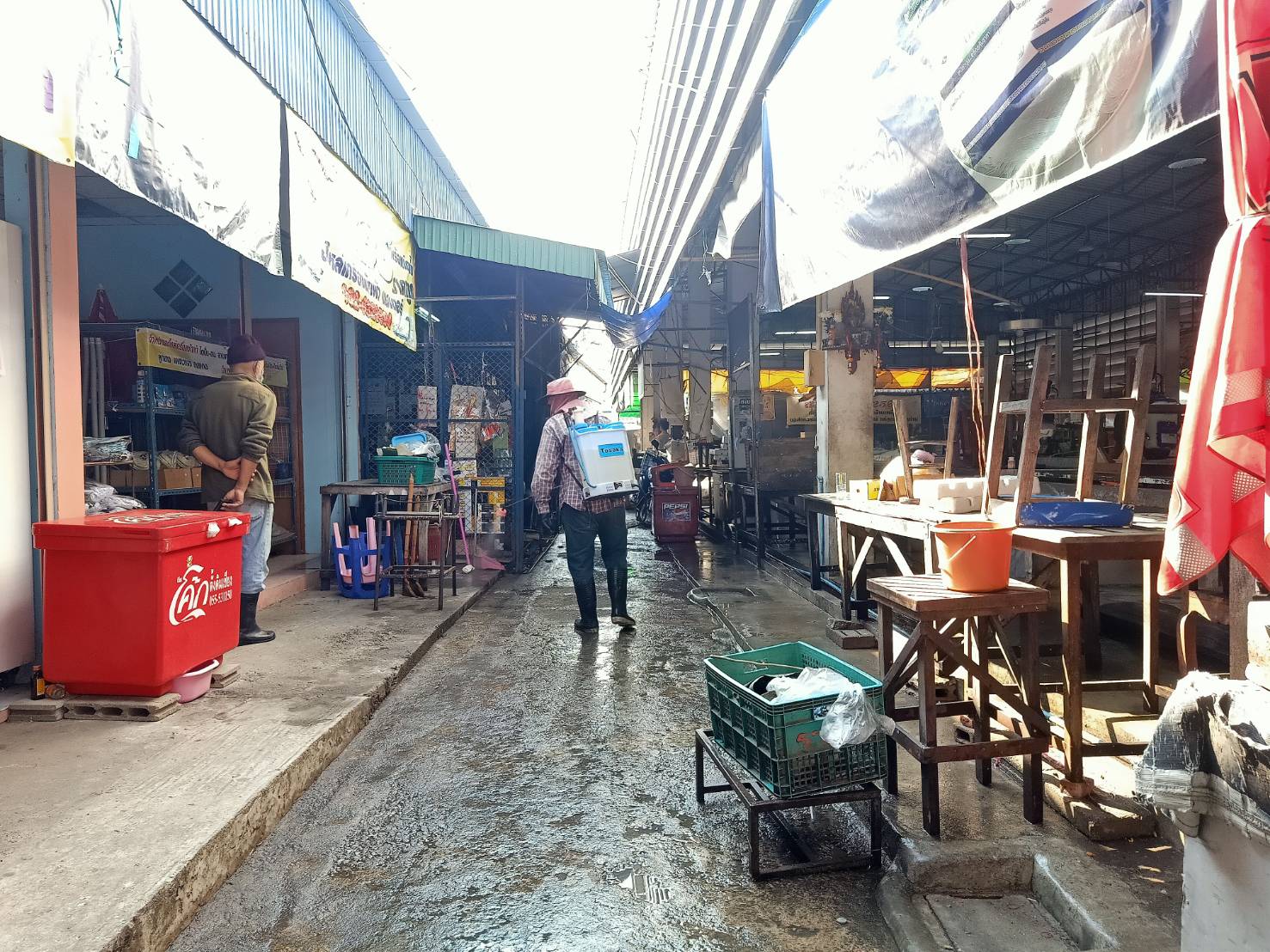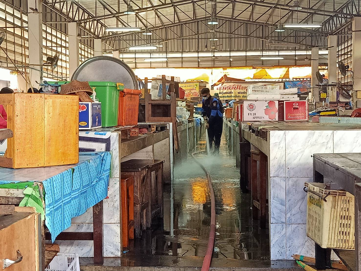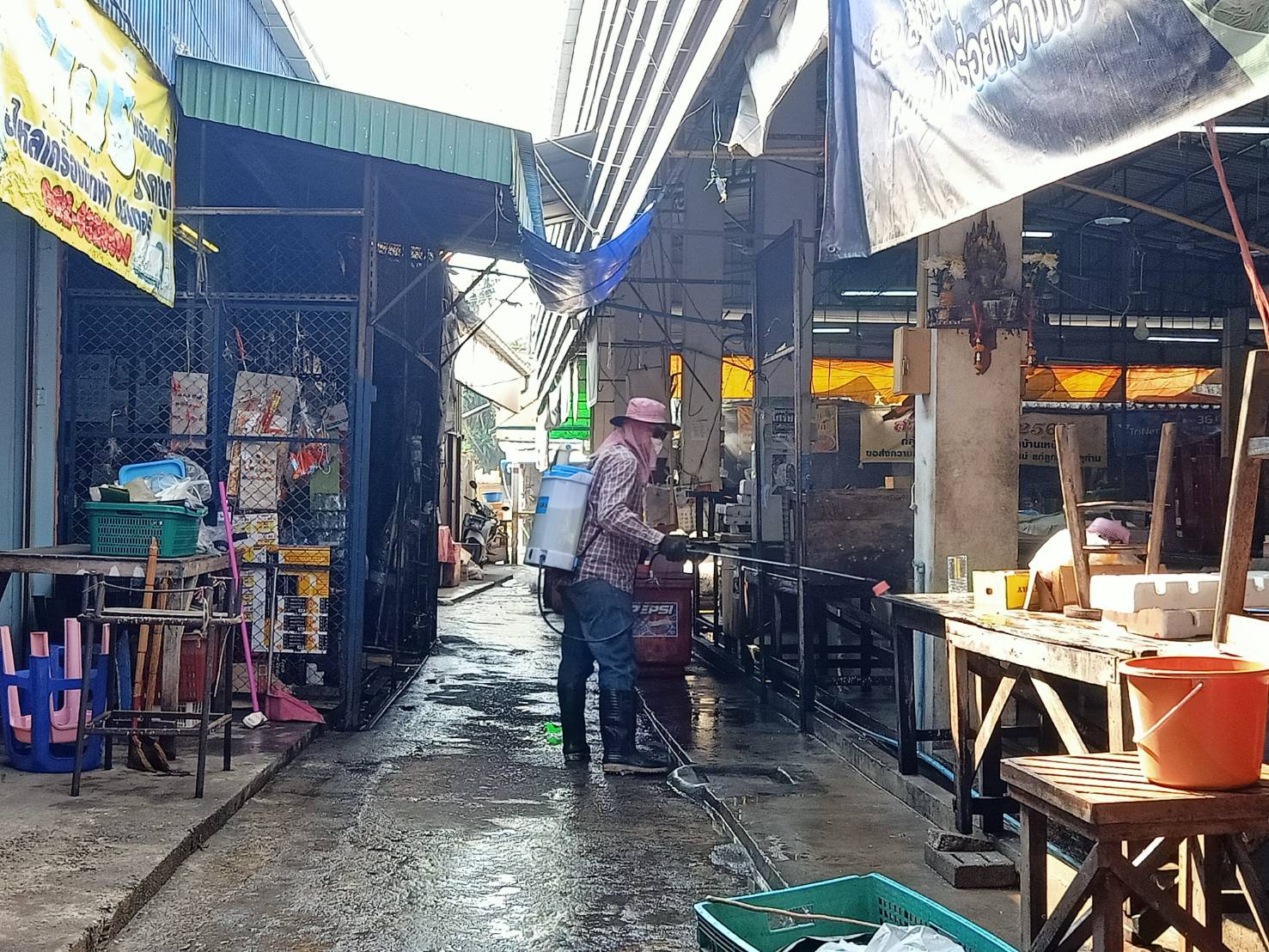 เทศบาลนครแม่สอด ดำเนินการฉีดล้างทำความสะอาด และพ่นยาฆ่าเชื้อ ตลาดสดบ้านเหนือ และตลาดศรีมอย