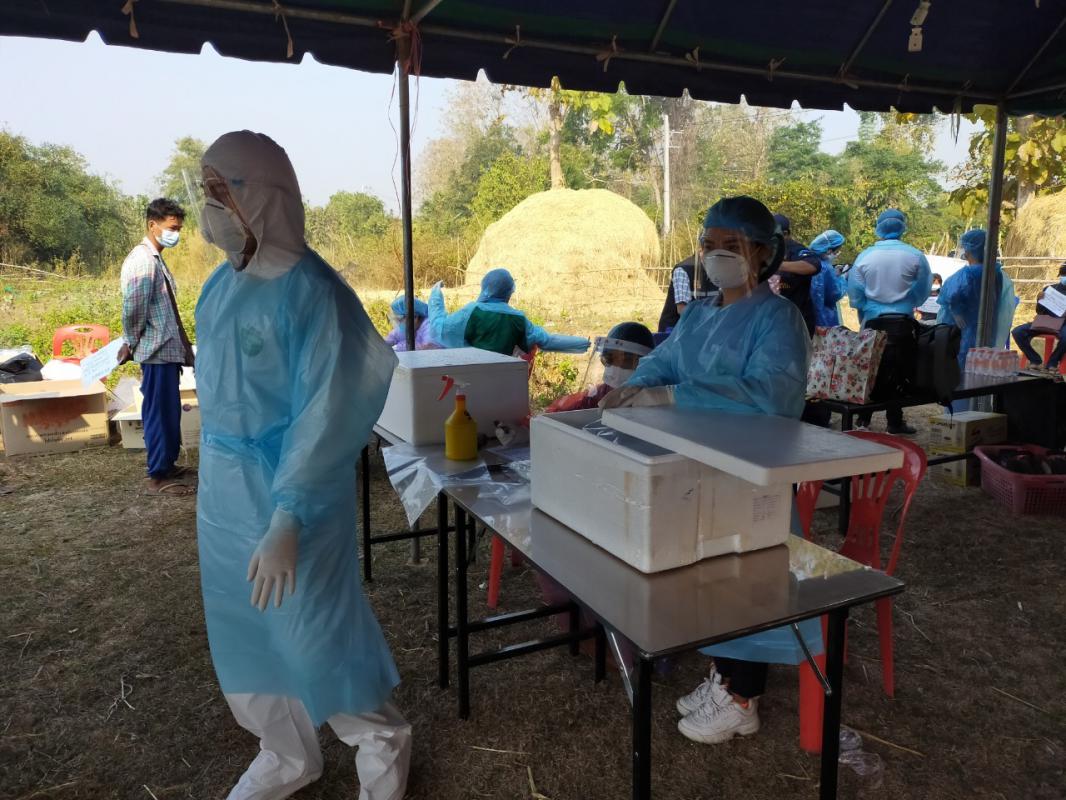 ทีมแม่สอด ดำเนินการค้นหาผู้ป่วยเชิงรุกในชุมชน หมู่บ้านแม่ปะ (ม.11,12) ซึ่งขยายผลจากการพบผู้ป่วยแรงงานต่างชาติในชุมชน ผลดำเนินการ Active Case Finding จำนวน 489 ราย ทั้งนี้ นพ.ธวัชชัย เศรษฐศุภพนา ผอ.รพ.แม่สอด ,นพ.รเมศ ว่องวิไลรัตน์ รองนพ.สสจ.ตาก ,นายเฉลิม กล่อมเกลี้ยง สสอ.แม่สอด ได้ตรวจเยี่ยมให้กำลังใจ จนท.ทีมแม่สอด ในการปฏิบัติงานครั้งนี้