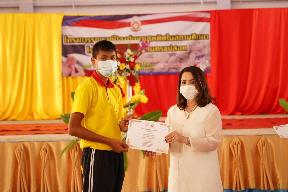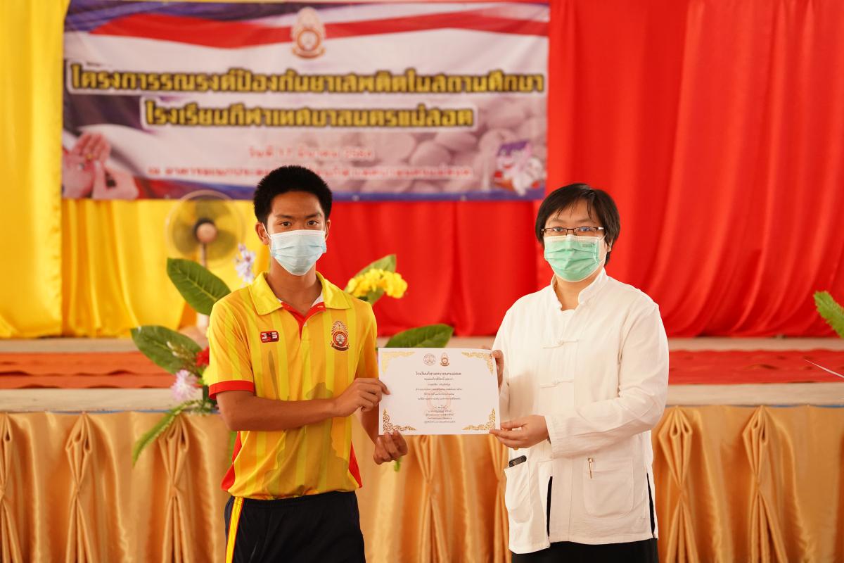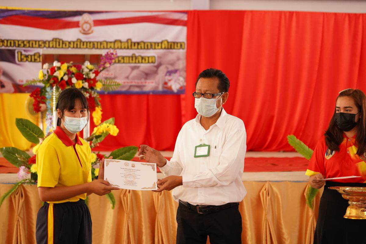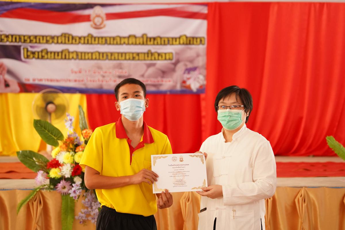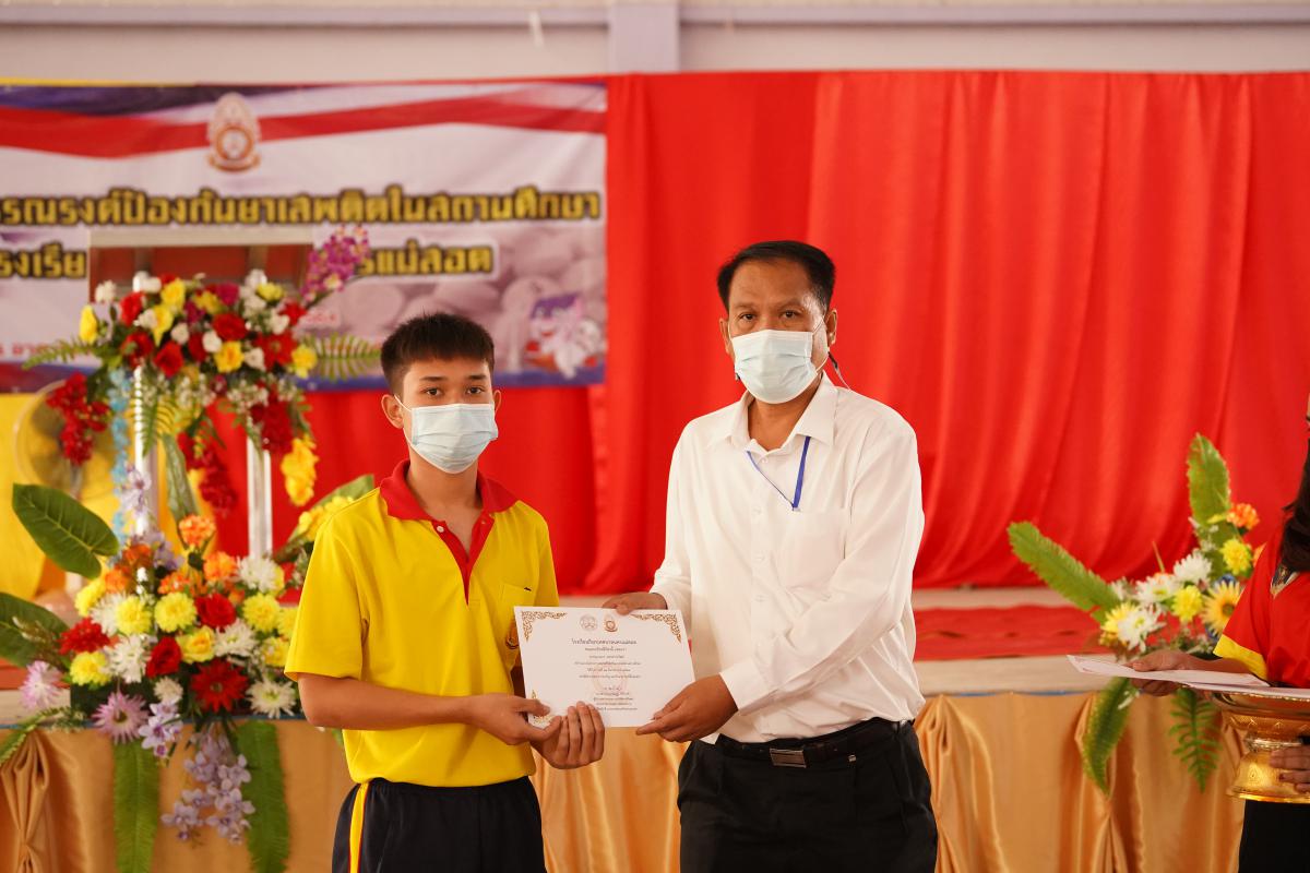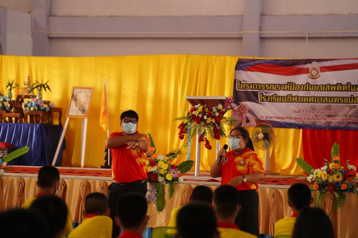 วันพุธที่ 17 มีนาคม 2564 เวลา 09.00 น. ณ โรงเรียนกีฬาเทศบาลนครแม่สอด นางสาวกัญจน์ณัฏฐ์ หริรักษ์ ผู้อำนวยการกองสวัสดิการสังคม รักษาราชการแทน ปลัดเทศบาล ปฏิบัติหน้าที่ นายกเทศมนตรีนครแม่สอด ให้เกียรติเป็นประธานในพิธีเปิดโครงการรณรงค์ป้องกันยาเสพติดในสถานศึกษา โรงเรียนกีฬาเทศบาลนครแม่สอด โดยมีนายเจริญ โกสิยาภรณ์ รักษาการผุ้อำนวยการสถานศึกษากล่าวรายงานถึงวัตถุประสงค์ของโครงการ ทั้งนี้ยังได้รับเกีบรติจากนายพงษ์พัฒน์ พยอมยนต์ หัวหน้าสำนักปลัดเทศบาล นายพีระวงค์หมอ ผู้อำนวยการกองการศึกษา พร้อมหัวหน้าส่วนราชการ หัวหน้าสถานศึกษาในสังกัดเทศบาลนครแม่สอด เข้าร่วมเป็นเกียรติในพิธีเปิดโครงการในครั้งนี้ โดยโครงการในครั้งนี้มีวัตถุประสงค์เพื่อปลุกฝังค่านิยมรวมถึงรณรงค์ป้องกันยาเสพติดในสถานศึกษา ร่วมถึงให้นักเรียนได้เข้าใจถึงโทษของยาเสพติด ซึ่งได้รับเกียรติจากดาบตำรวจ เอกวัสถ์ พอกพูนธนนันท์ สังกัดสถานีตำรวจอำเภอแม่สอด มาเป็นวิทยากรให้ความรู้แก่นักเรียนในโครงการนี้