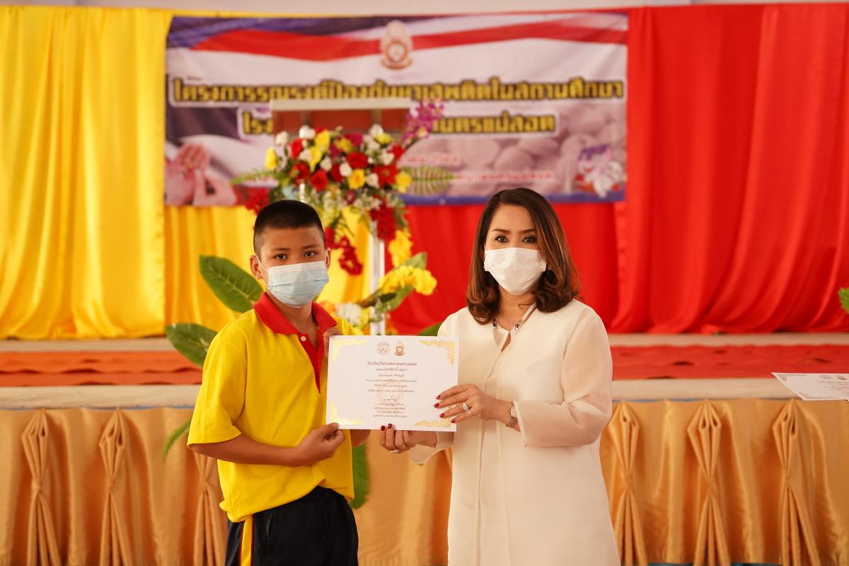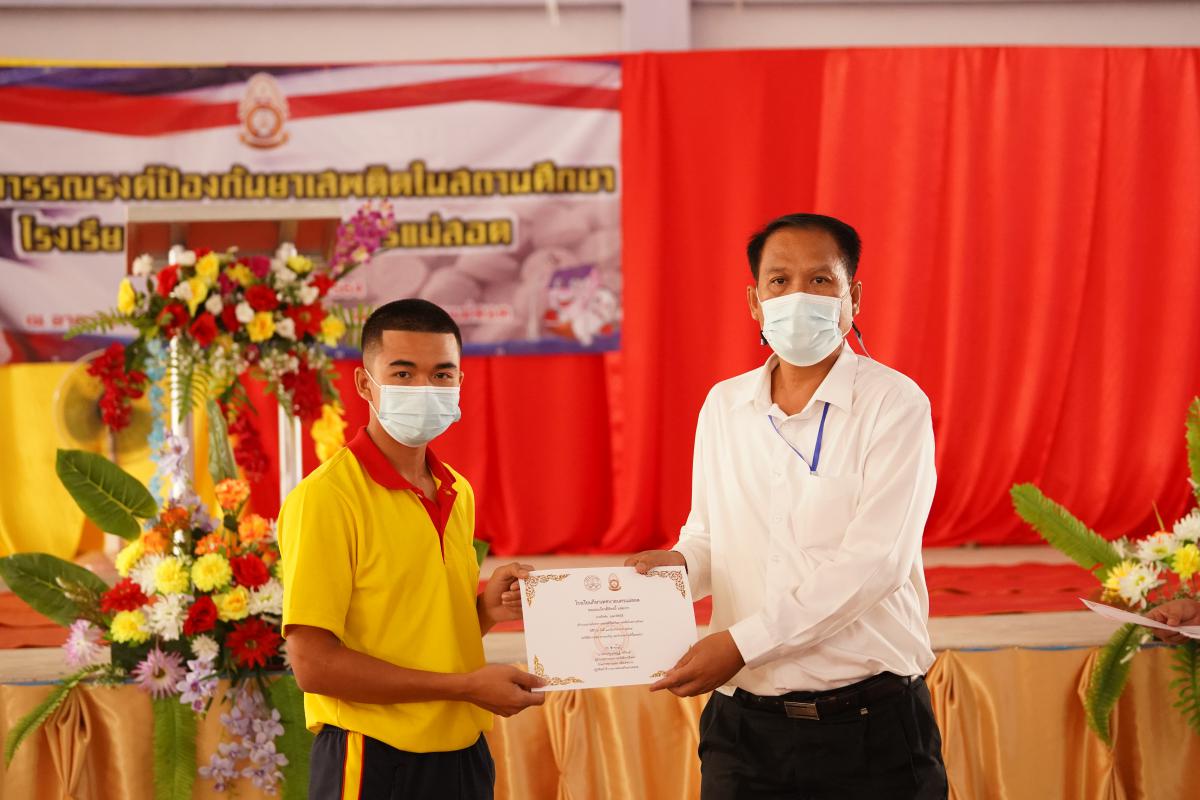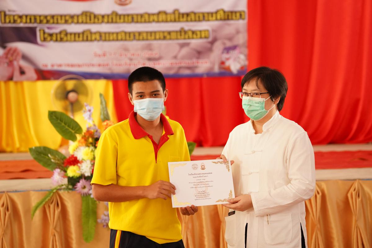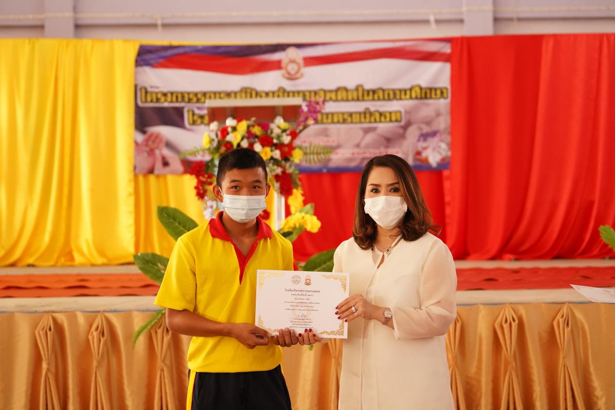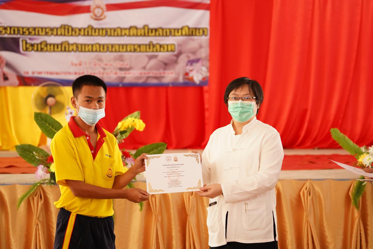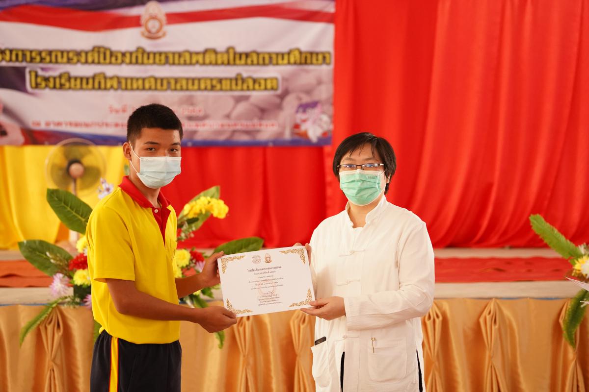 นอกจากนี้นางสาวกัญจน์ณัฏฐ์ หริรักษ์ ผู้อำนวยการกองสวัสดิการสังคม รักษาราชการแทน ปลัดเทศบาล ปฏิบัติหน้าที่ นายกเทศมนตรีนครแม่สอด พร้อมหัวหน้าส่วนราชการให้เกียรติมอบเกียรติบัตรแก่นักเรียนที่เข้าร่วมโครงการ อันสร้างขวัญกำลังใจแก่ผู้ปฏิบัติหน้าที่และนักเรียนที่เข้าร่วมโครงการในครั้งนี้