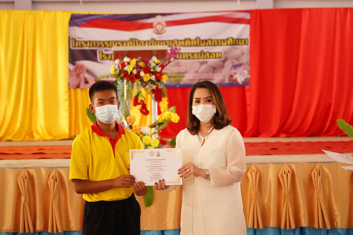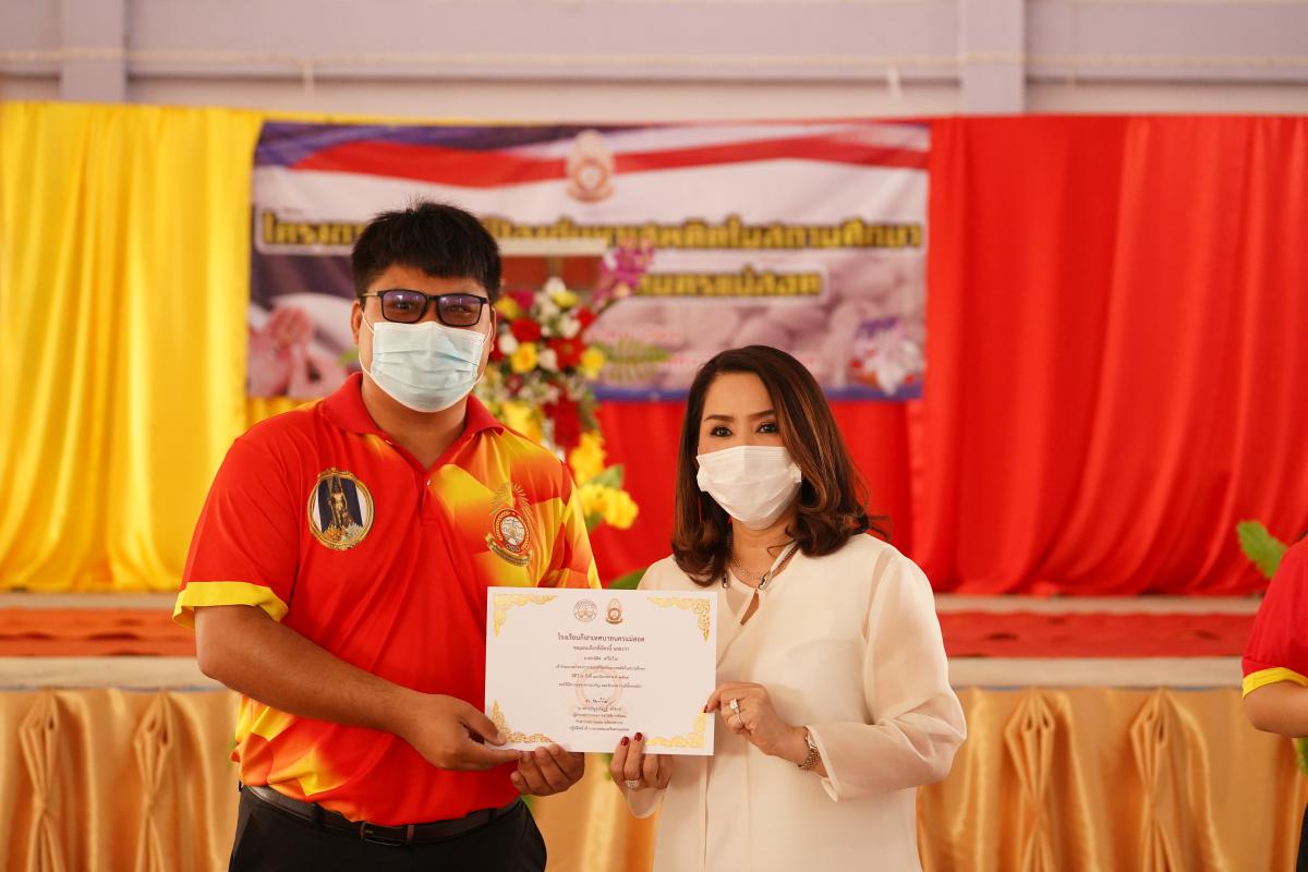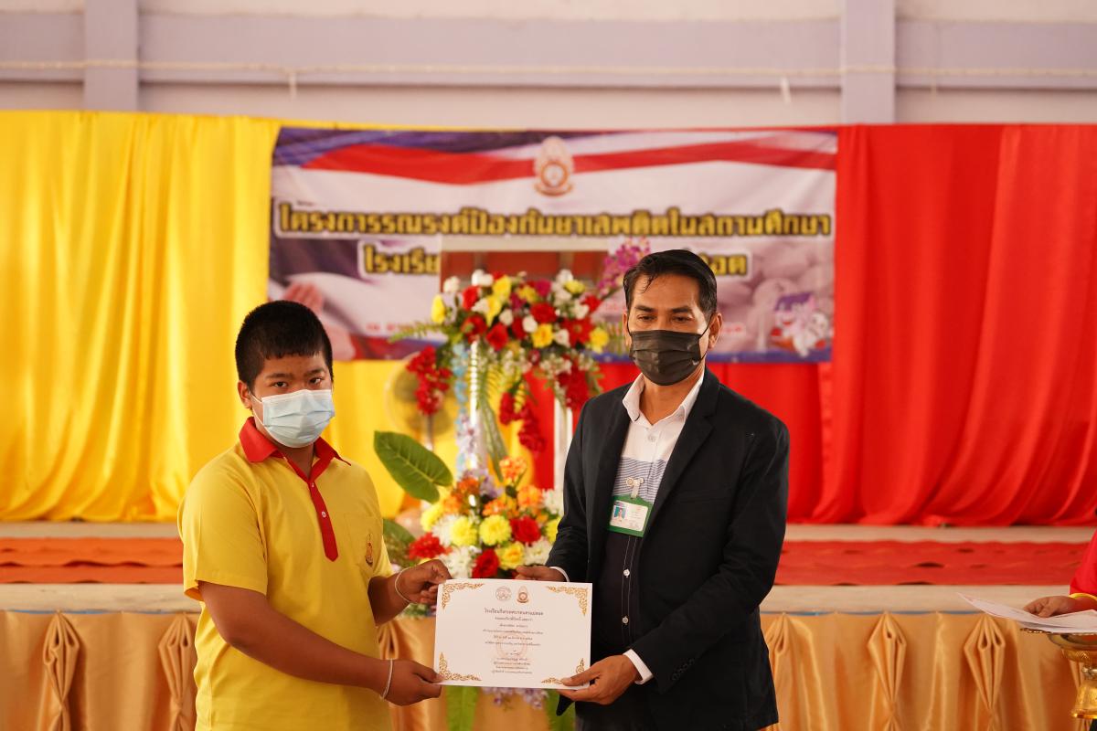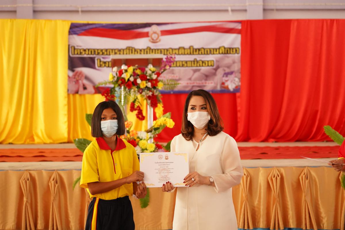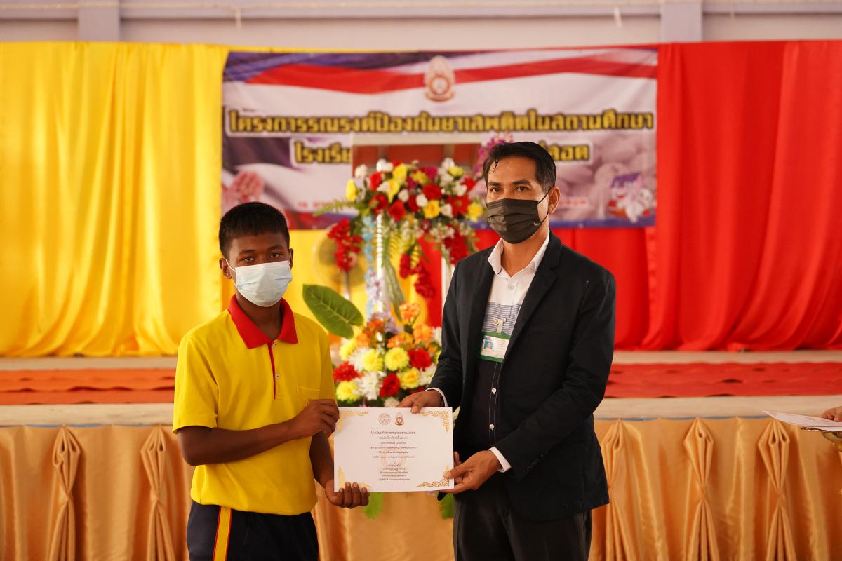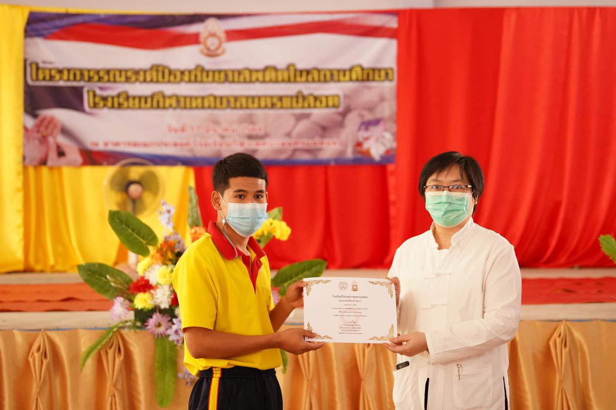 นอกจากนี้นางสาวกัญจน์ณัฏฐ์ หริรักษ์ ผู้อำนวยการกองสวัสดิการสังคม รักษาราชการแทน ปลัดเทศบาล ปฏิบัติหน้าที่ นายกเทศมนตรีนครแม่สอด พร้อมหัวหน้าส่วนราชการให้เกียรติมอบเกียรติบัตรแก่นักเรียนที่เข้าร่วมโครงการ อันสร้างขวัญกำลังใจแก่ผู้ปฏิบัติหน้าที่และนักเรียนที่เข้าร่วมโครงการในครั้งนี้
