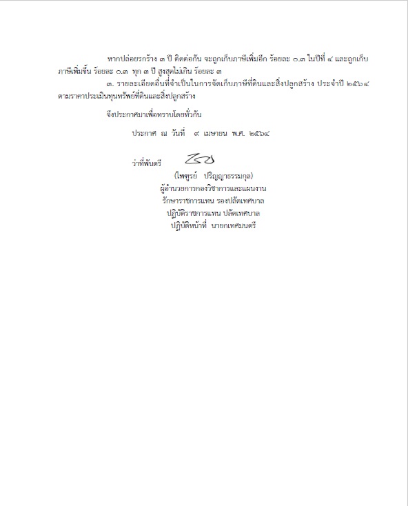 ประกาศเทศบาลนครแม่สอด เรื่อง ราคาประเมินทุนทรัพย์ของที่ดินและสิ่งปลูกสร้าง อัตราการจัดเก็บ และรายละเอียดอื่นที่จำเป็นในการจัดเก็บภาษี ประจำปี 2564