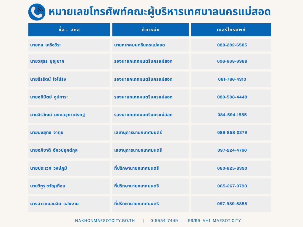 คณะผู้บริหารเทศบาลนครแม่สอด