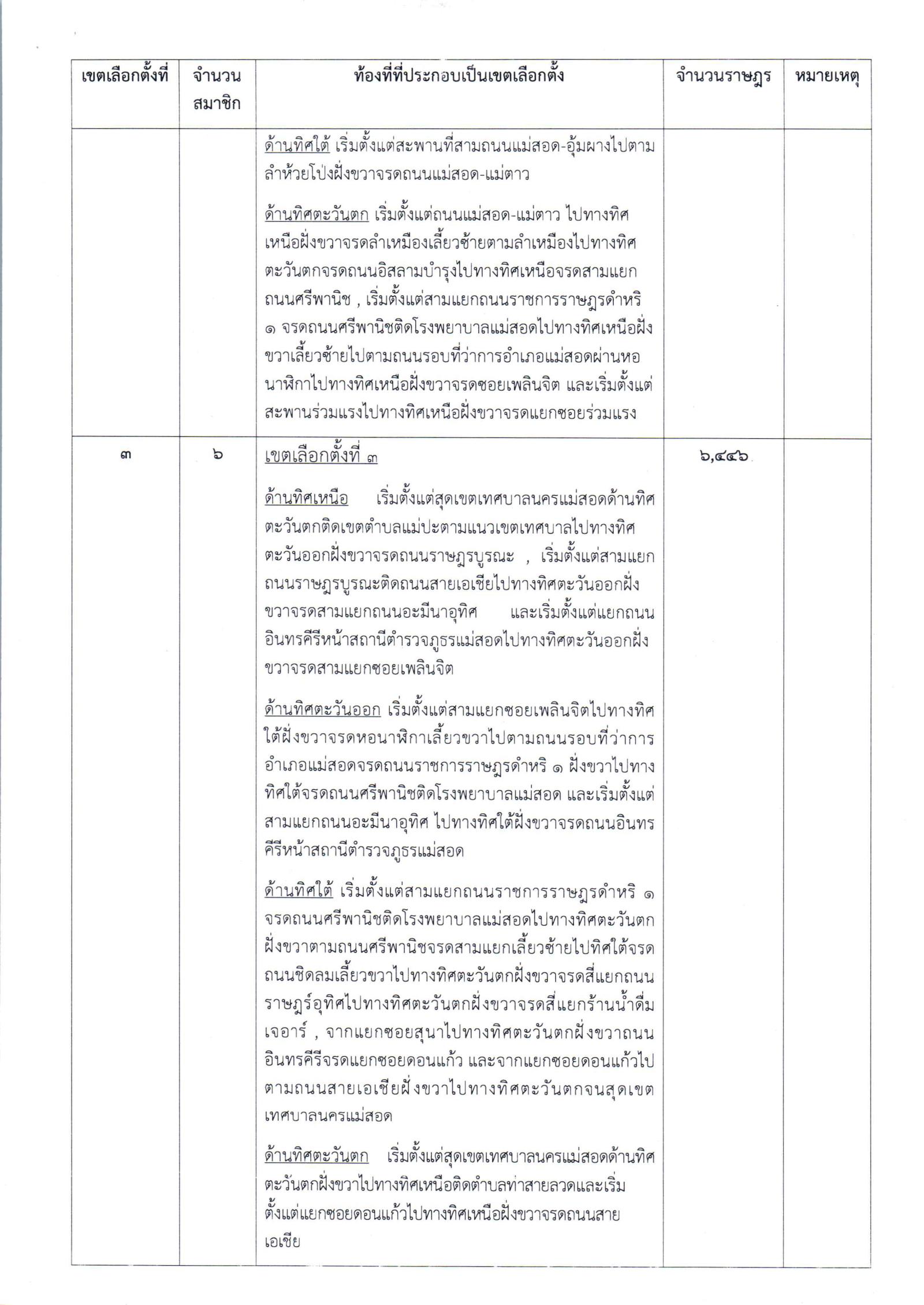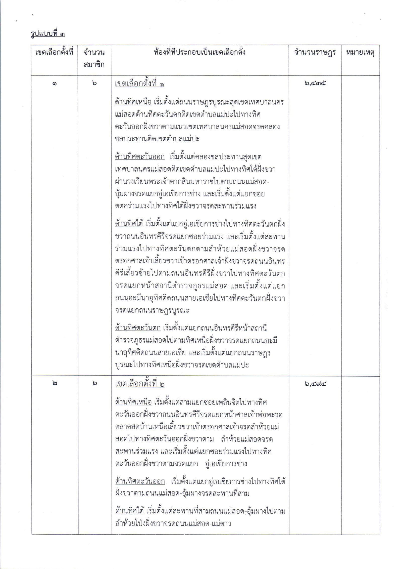 ประกาศสำนักงานคณะกรรมการการเลือกตั้งประจำจังหวัดตาก เรื่อง รูปแบบการเเบ่งเขตเลือกตั้งสมาชิกสภาเทศบาลนครแม่สอด อำเภอแม่สอด จังหวัดตาก เพื่อรับฟังความคิดเห็นและข้อเสนอเเนะจากประชาชนในเขตเลือกตั้ง