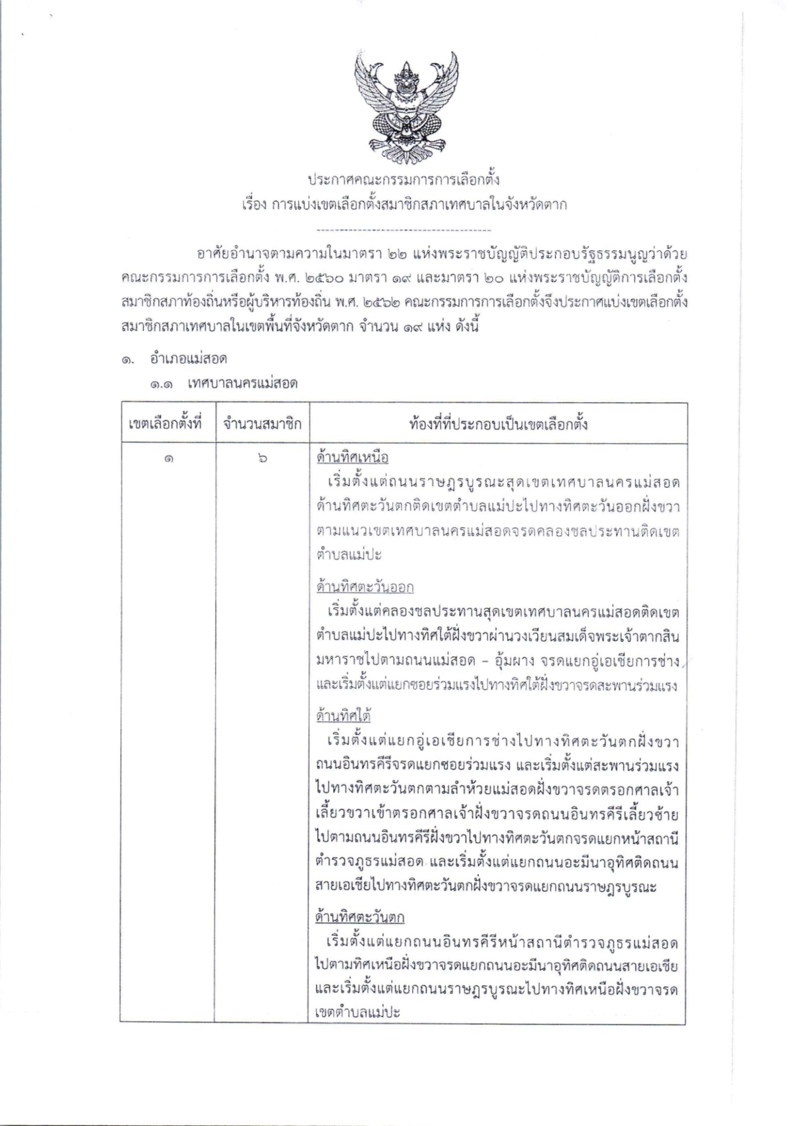 ดาวน์โหลดเอกสารประกาศคณะกรรมการการเลือกตั้ง เรื่อง การแบ่งเขตเลือกตั้งสมาชิกสภาเทศบาลในจังหวัดตาก.pdf