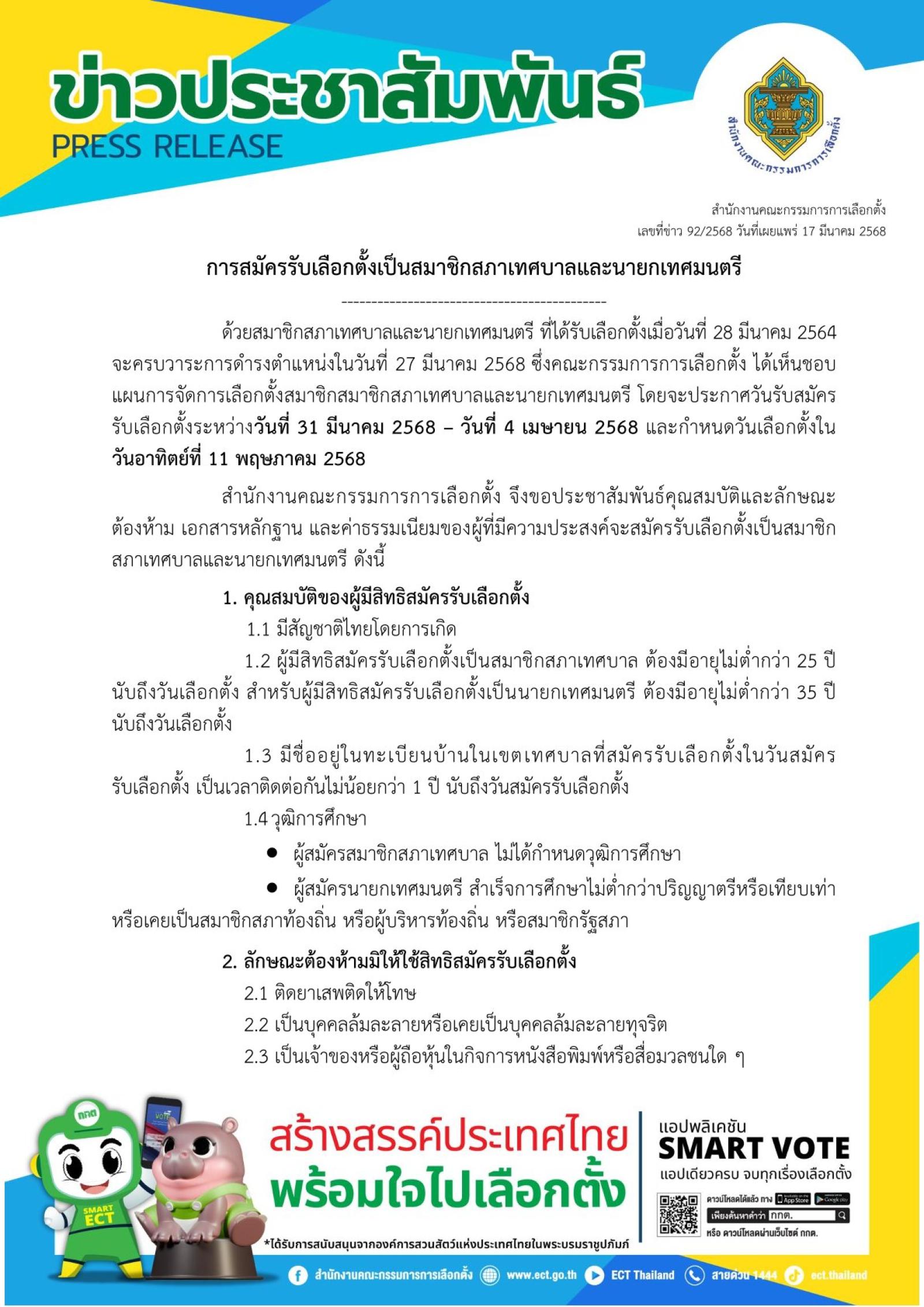 หมวดหมู่: ข้อมูลการเลือกตั้งสมาชิกสภาเทศบาลและนายกเทศมนตรี 2568
