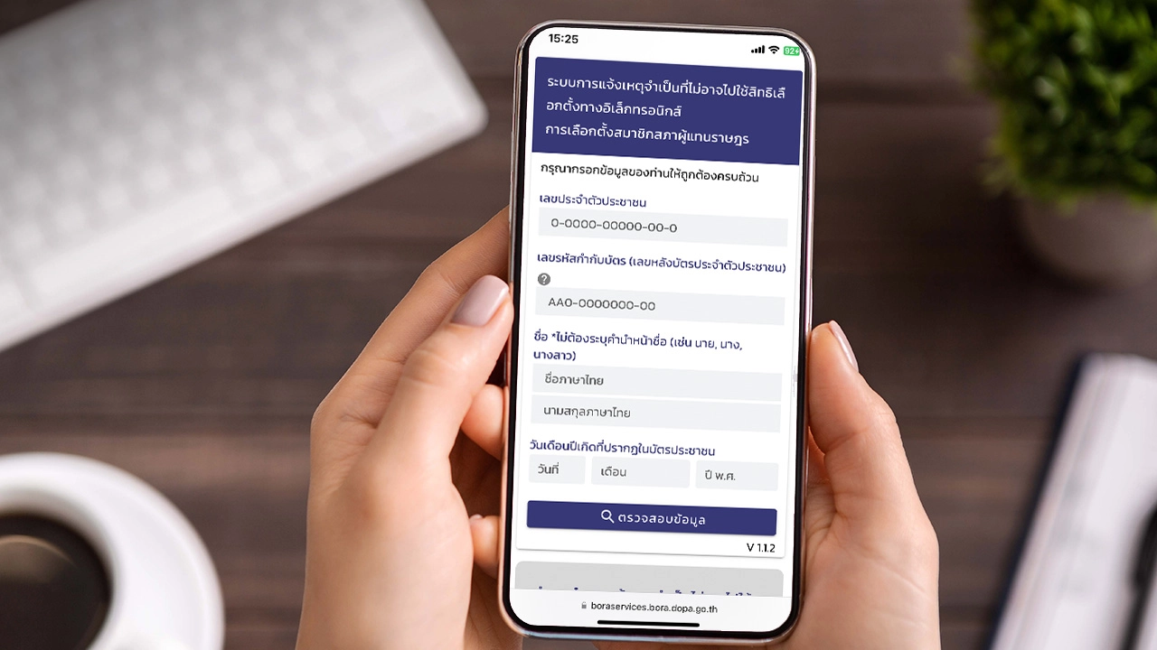 - แอปพลิเคชัน Smart Vote หัวข้อ “การแจ้งเหตุจำเป็นที่ไม่อาจไปใช้สิทธิเลือกตั้งทางอิเล็กทรอนิกส์