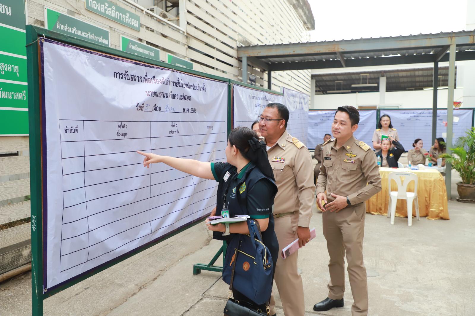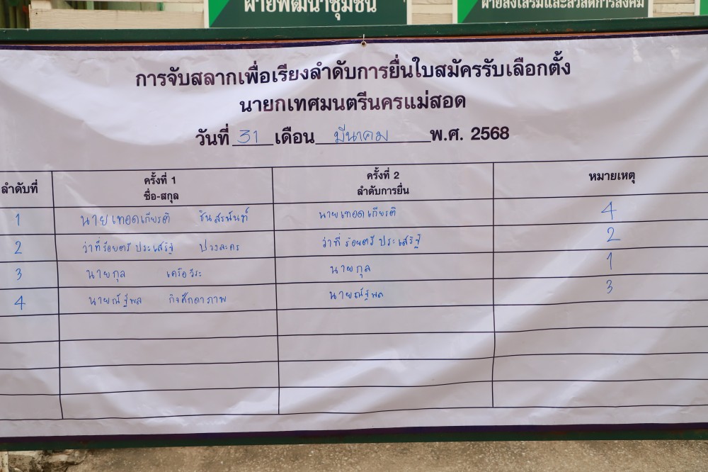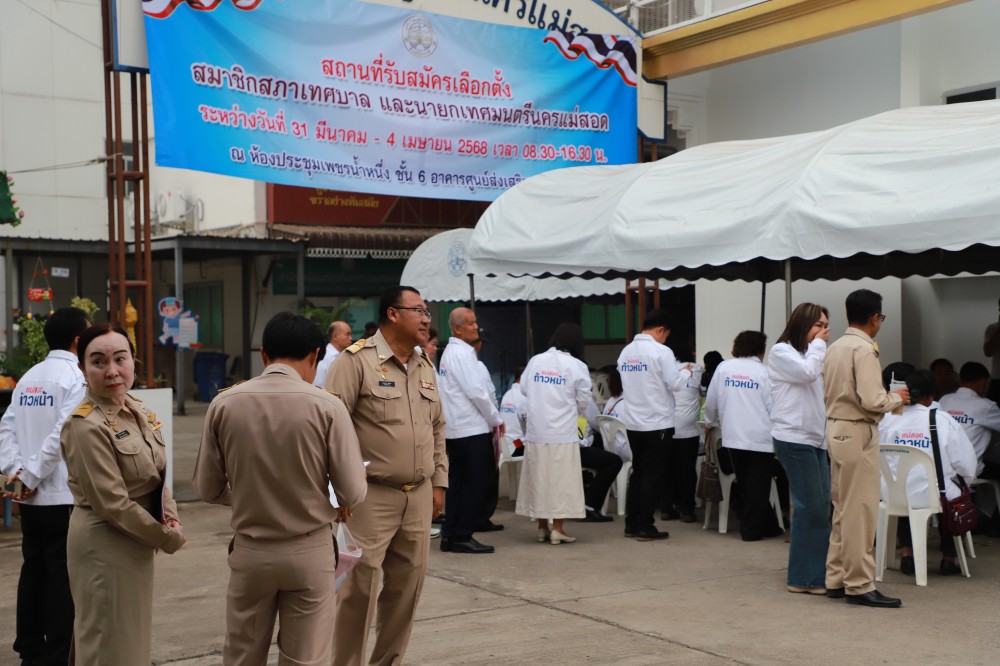 นายประสาน มั่นมาก รองปลัดเทศบาล รักษาราชการแทน ปลัดเทศบาลนครแม่สอด เป็นผู้อำนวยการการเลือกตั้งประจำเทศบาลนครแม่สอด พร้อมด้วย หัวหน้าส่วนราชการ และเจ้าหน้าที่ที่เกี่ยวข้อง ดำเนินการรับสมัครผู้สมัครรับเลือกตั้งสมาชิกสภาเทศบาลนครแม่สอด และนายกเทศมนตรีนครแม่สอด ร่วมกับคณะกรรมการการเลือกตั้งประจำจังหวัดตาก เพื่อให้การรับสมัครผู้สมัครรับเลือกตั้งฯ ดังกล่าวเป็นไปด้วยความเรียบร้อย ถูกต้อง โปร่งใส และชอบด้วยกฎหมาย โดยจะมีการรับสมัครผู้สมัครรับเลือกตั้งฯ ในระหว่างวันที่ 31 มีนาคม 2568 – 4 เมษายน 2568 เวลา 08.30 – 16.30 น.