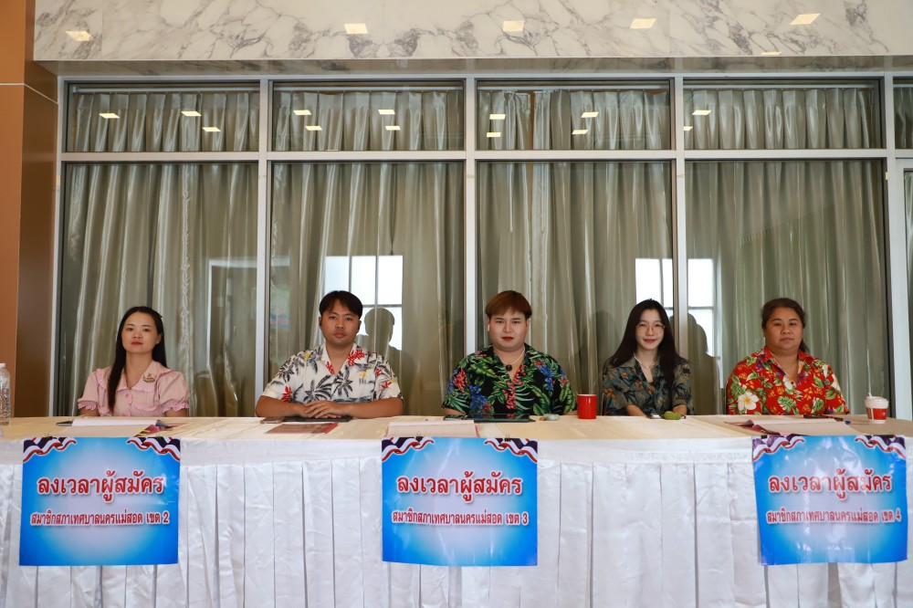 นายประสาน มั่นมาก รองปลัดเทศบาล รักษาราชการแทน ปลัดเทศบาลนครแม่สอด ปฏิบัติหน้าที่นายกเทศมนตรีนครแม่สอด เป็นผู้อำนวยการการเลือกตั้งประจำเทศบาลนครแม่สอด พร้อมด้วย หัวหน้าส่วนราชการ และเจ้าหน้าที่ที่เกี่ยวข้อง ให้การต้อนรับ นายอนันต์ กิตติรัตนวศิน พร้อมคณะผู้ตรวจการเลือกตั้งประจำจังหวัดตาก ลงพื้นที่ตรวจเยี่ยม ติดตามการรับสมัคร รับเลือกตั้งสมาชิกสภาเทศบาลนครแม่สอด และนายกเทศมนตรีนครแม่สอด เพื่อให้การรับสมัครผู้สมัครรับเลือกตั้งฯ ดังกล่าว เป็นไปด้วยความเรียบร้อย ถูกต้อง โปร่งใส และชอบด้วยกฎหมาย โดยมีการรับสมัครผู้สมัครรับเลือกตั้งฯ ในระหว่างวันที่ 31 มีนาคม 2568 ถึง 4 เมษายน 2568 เวลา 08.30 – 16.30 น.