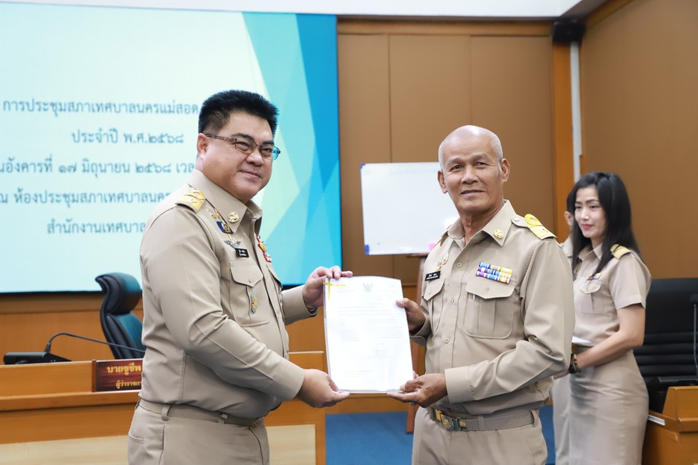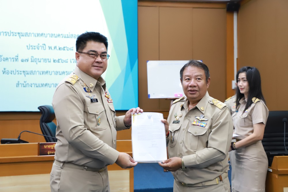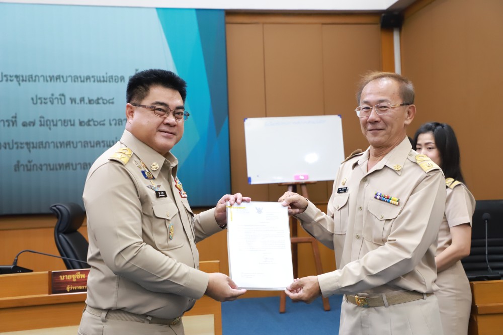 เมื่อวันอังคาร ที่ 17 มิถุนายน 2568 เวลา 09.30 น. ณ ห้องประชุมสภาเทศบาลนครแม่สอด (ชั้น 4) อาคารสำนักงานเทศบาลนครแม่สอด อำเภอแม่สอด จังหวัดตาก ได้กำหนดให้มีการประชุมสภาเทศบาลนครแม่สอด ครั้งแรก
