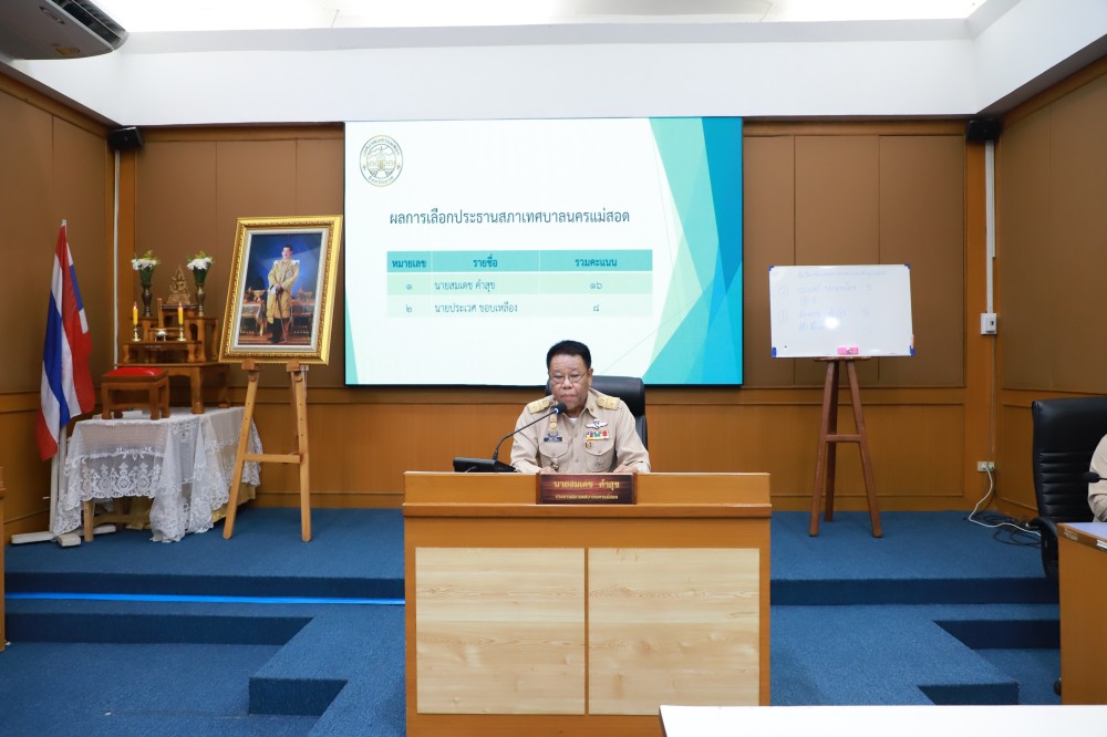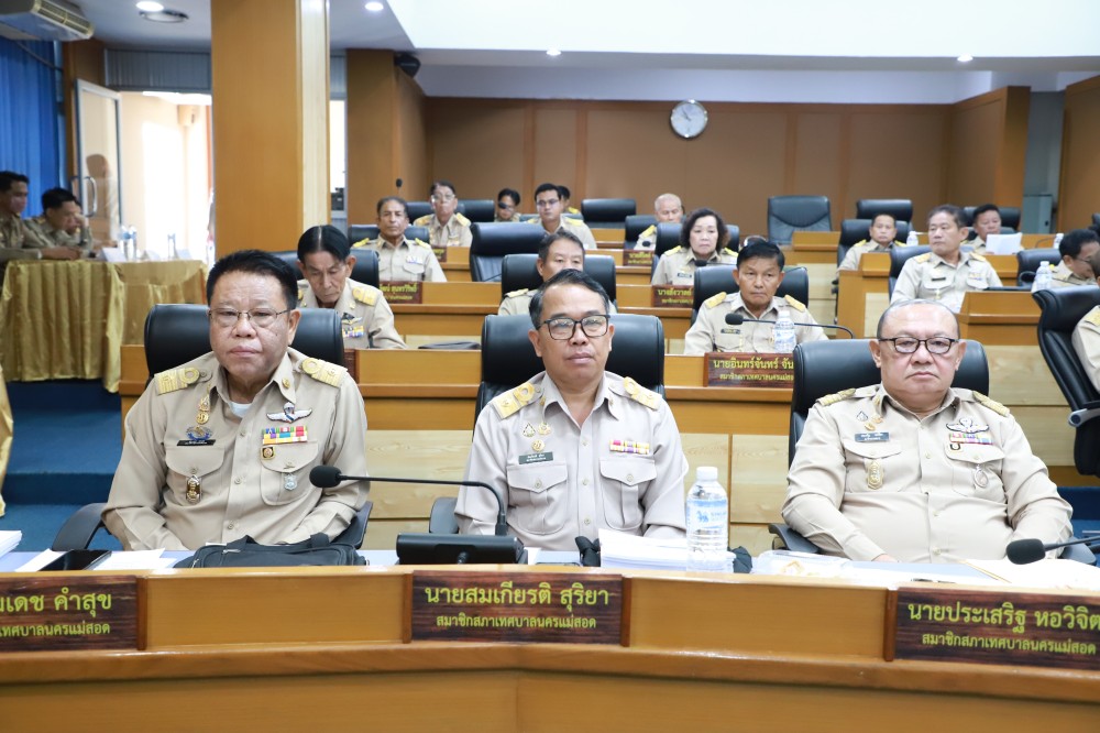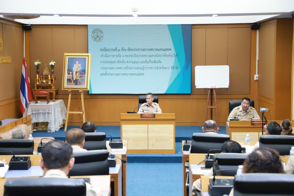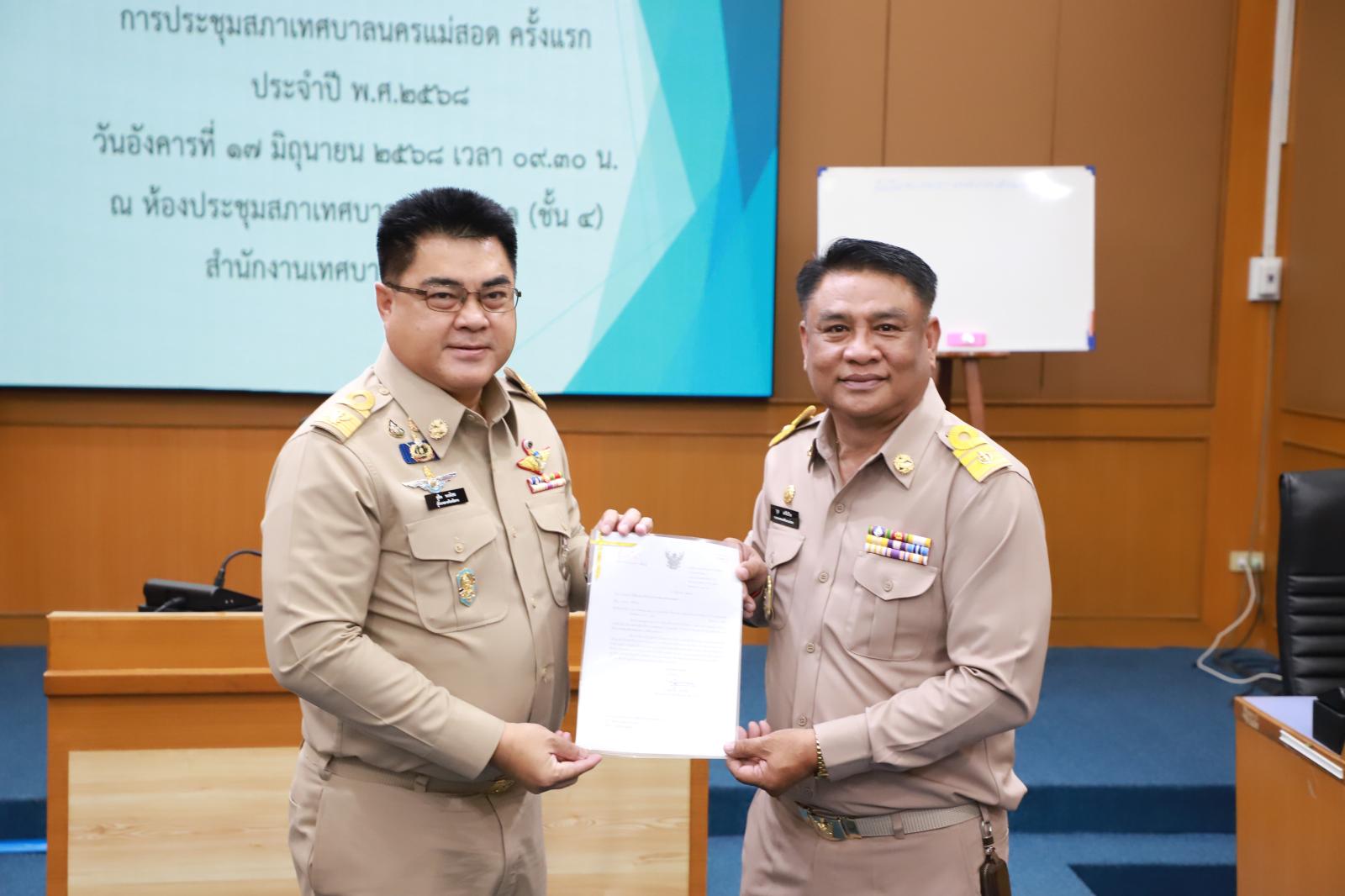 โดยได้รับเกียรติจาก นายชูชีพ พงษ์ไชย ผู้ว่าราชการจังหวัดตาก เป็นประธานการประชุม ทั้งนี้มี นายไตรศักดิ์ บุณยเศรณี เป็นประธานสภาเทศบาลชั่วคราว และนายประสาน มั่นมาก รองปลัดเทศบาล รักษาราชการแทน ปลัดเทศบาลนครแม่สอด เป็นเลขานุการสภาเทศบาลชั่วคราว พร้อมด้วยสมาชิกสภาเทศบาล และหัวหน้าส่วนราชการ เข้าร่วม การประชุม โดยพร้อมเพรียงกัน ซึ่งที่ประชุมมีมติเห็นชอบแต่งตั้ง นายสมเดช คำสุข เป็นประธานสภาเทศบาลนครแม่สอด และมีมติเห็นชอบแต่งตั้ง นายอเนก ตันคำแดง เป็นรองประธานสภาเทศบาล และมีมติเห็นชอบแต่งตั้ง นายพงศ์พัฒน์ พยอมยนต์ เป็นเลขานุการสภาเทศบาล อีกทั้งกำหนดสมัยประชุมสภาสามัญประจำปี 2568 และกำหนดสมัยประชุมสมัยแรกของปีถัดไป ทั้งนี้สมาชิกสภาเทศบาล นครแม่สอดได้กล่าวปฏิญาณตนก่อนเข้ารับหน้าที่ของสมาชิกสภาเทศบาลนครแม่สอด อีกด้วย