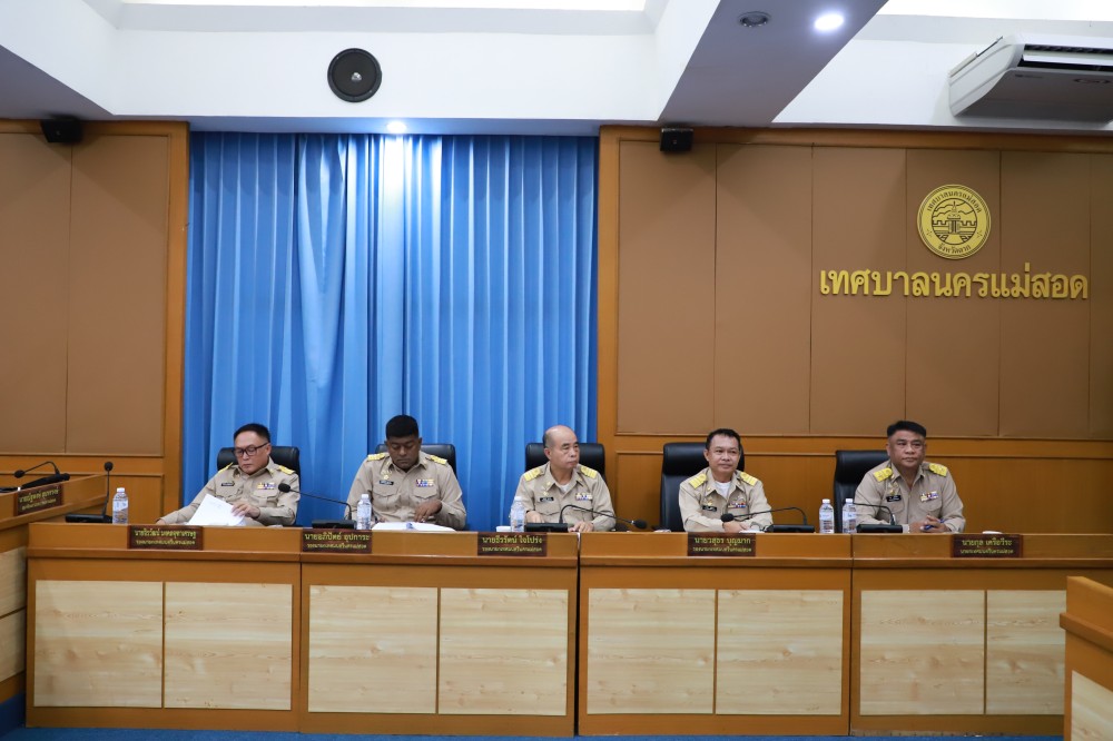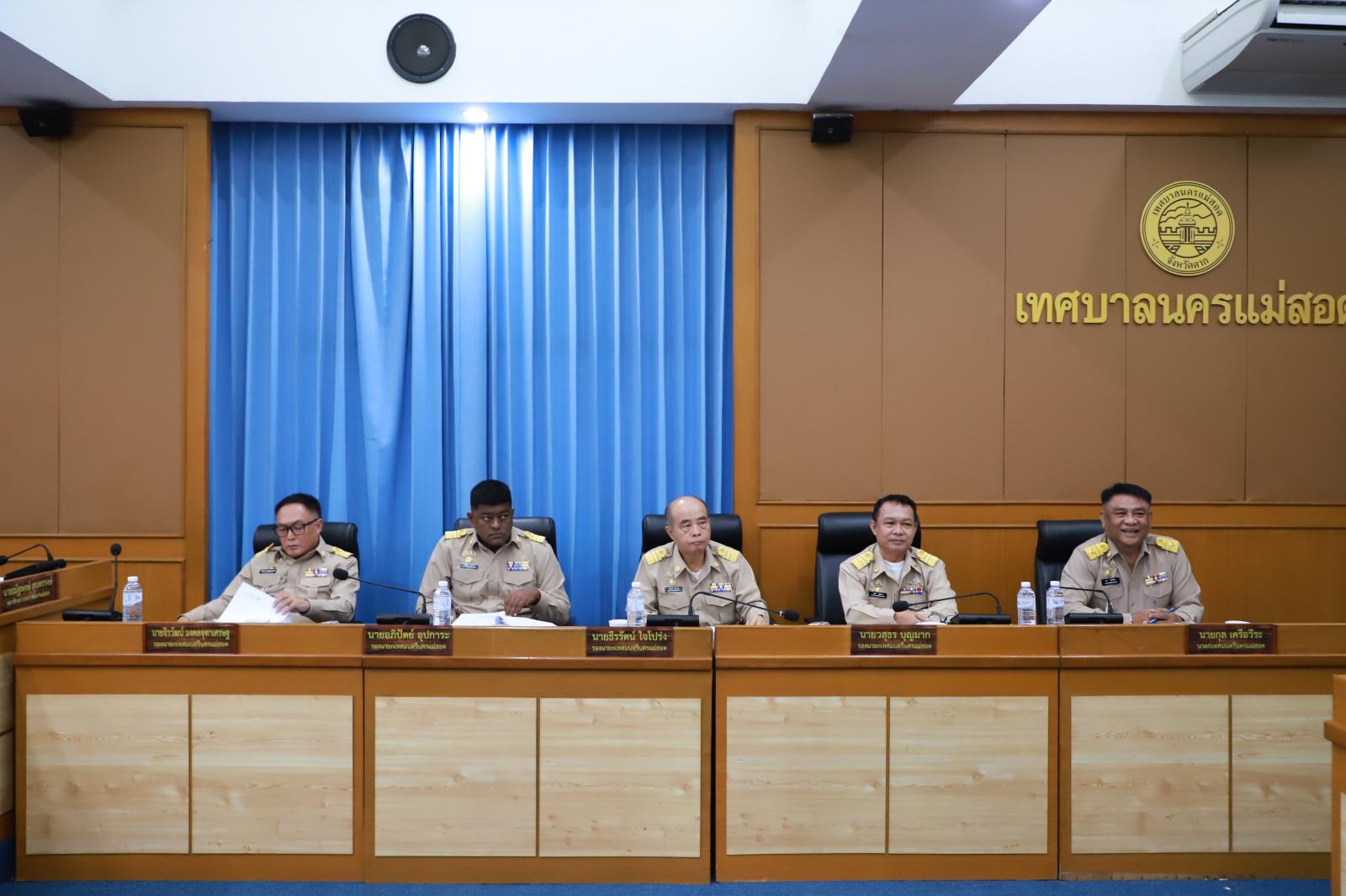 โดยมี นายกุล เครือวีระ นายกเทศมนตรีนครแม่สอด พร้อมด้วยคณะผู้บริหาร และหัวหน้าส่วนราชการสังกัดเทศบาลนครแม่สอด เข้าร่วมประชุม ฯ มีระเบียบวาระการประชุมดังนี้