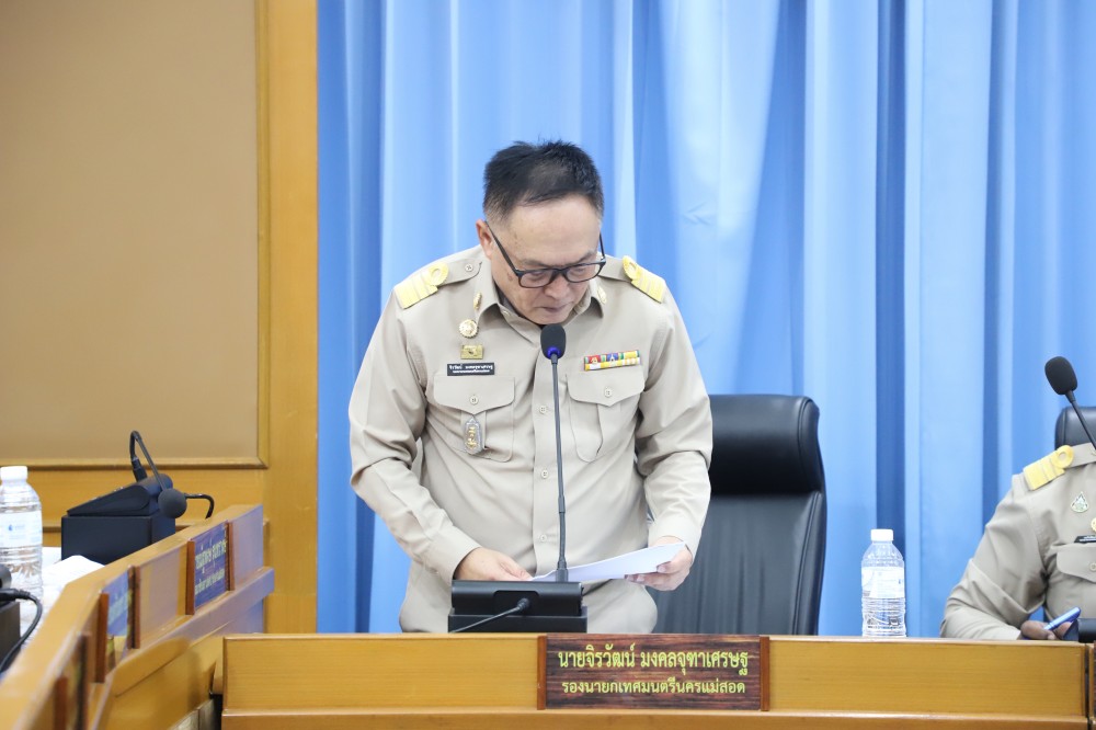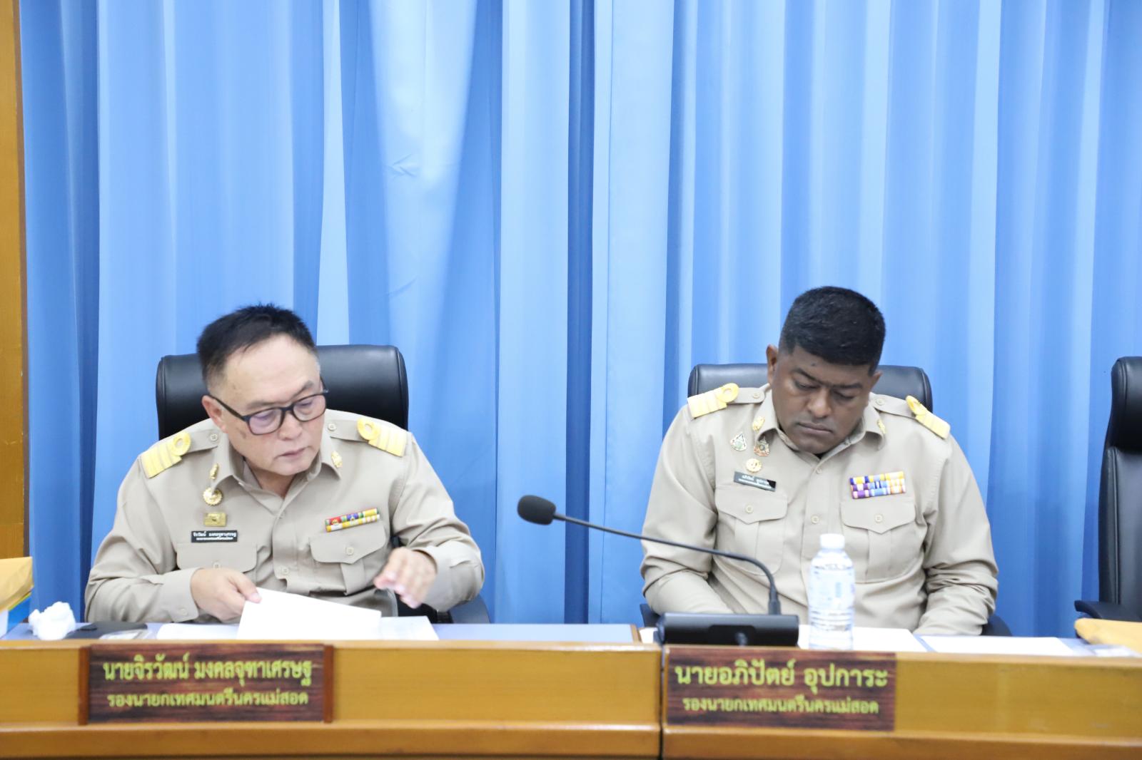 โดยมี นายกุล เครือวีระ นายกเทศมนตรีนครแม่สอด พร้อมด้วย คณะผู้บริหาร และหัวหน้าส่วนราชการสังกัดเทศบาลนครแม่สอด เข้าร่วมประชุม ฯ มีระเบียบวาระการประชุมดังนี้