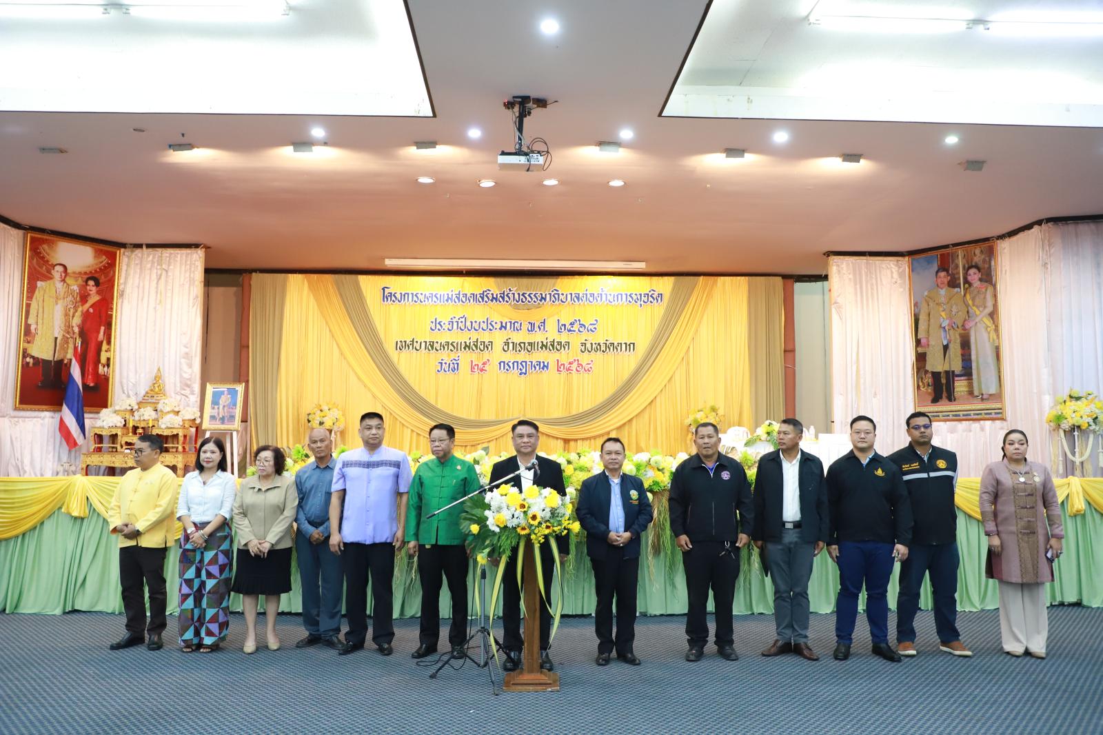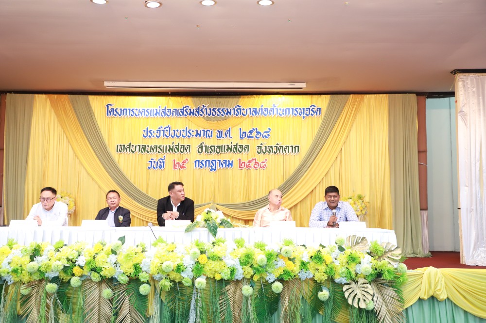 โดย นายกุล เครือวีระ นายกเทศมนตรีนครแม่สอด พร้อมด้วย คณะผู้บริหาร สมาชิกสภาเทศบาล นายประสาน มั่นมาก รองปลัดเทศบาล รักษาราชการแทน ปลัดเทศบาลนครแม่สอด ผู้อำนวยการกอง หัวหน้าส่วนราชการ คณะครูโรงเรียนในสังกัดเทศบาลนครแม่สอด และเจ้าหน้าที่ที่เกี่ยวข้อง เข้าร่วมโครงการนครแม่สอดเสริมสร้างธรรมาภิบาลต่อต้านการทุจริต ประจำปีงบประมาณ พ.ศ. 2568 โดยช่วงเช้า ได้รับเกียรติจาก เจ้าพนักงานป้องกันการทุจริต สำนักงาน ป.ป.ช. ประจำจังหวัดตาก เป็นวิทยากรให้ความรู้