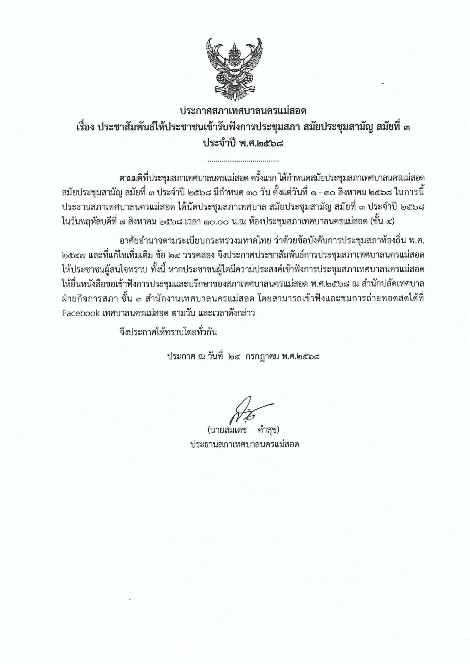 ประชาสัมพันธ์ การประชุมสภาเทศบาลนครแม่สอด อื่นๆ ที่เกี่ยวข้อง