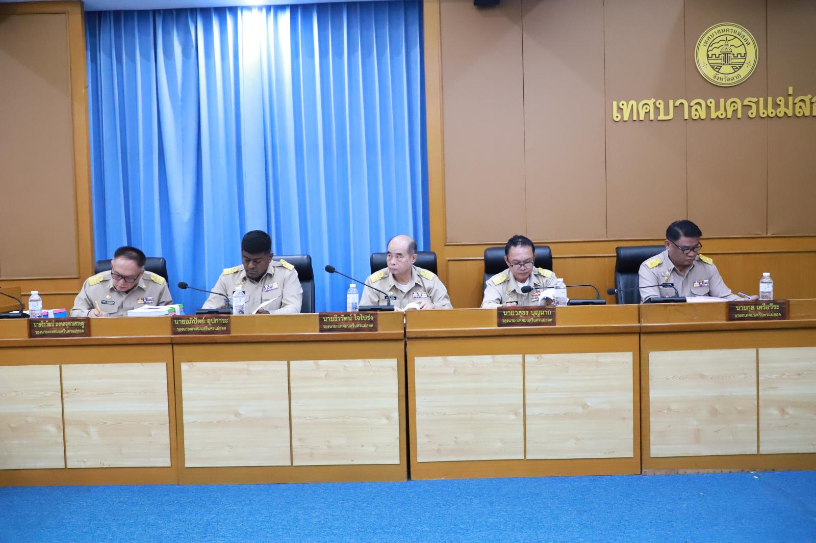 โดยมี นายกุล เครือวีระ นายกเทศมนตรีนครแม่สอด พร้อมด้วย คณะผู้บริหาร และหัวหน้าส่วนราชการสังกัดเทศบาลนครแม่สอด เข้าร่วมประชุม ฯ มีระเบียบวาระการประชุมดังนี้