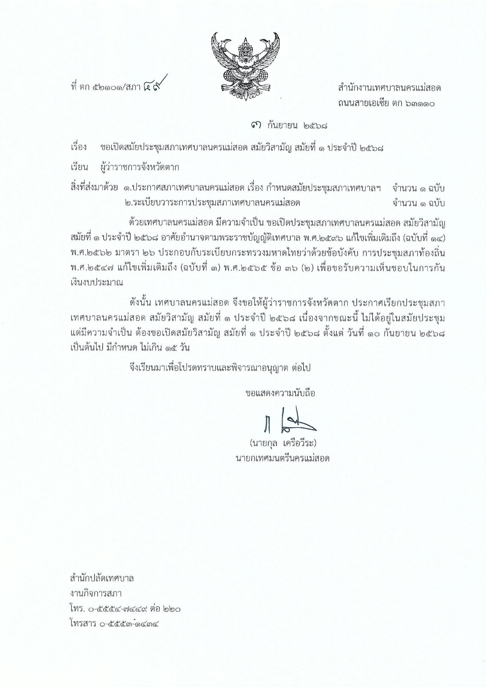 เทศบาลนครแม่สอด ขอเปิดประชุมสภาเทศบาลนครแม่สอด สมัยวิสามัญ สมัยที่ 1 ประจำปี 2568.pdf
