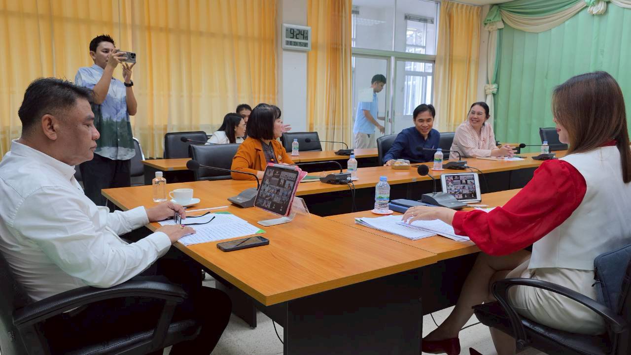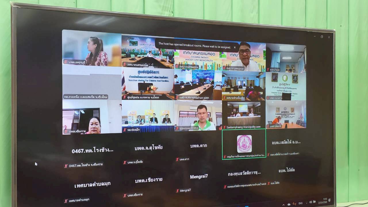 นายกุล เครือวีระ นายกเทศมนตรีนครแม่สอด พร้อมด้วย นางสาวเสาวนีย์ อุดด้วง รองปลัดเทศบาลนครแม่สอด ปฏิบัติราชการแทนปลัดเทศบาลนครแม่สอด หัวหน้าส่วนราชการ และเจ้าหน้าที่ที่เกี่ยวข้อง เข้าร่วมการประชุมรับการประเมินด้วยการสัมภาษณ์เพื่อพิจารณาคัดเลือกเป็นศูนย์ชุมชนคุ้มครองเด็กต้นแบบดีเด่น ประจำปีงบประมาณ 2568 ผ่านระบบการประชุมทางไกล Zoom Cloud Meeting