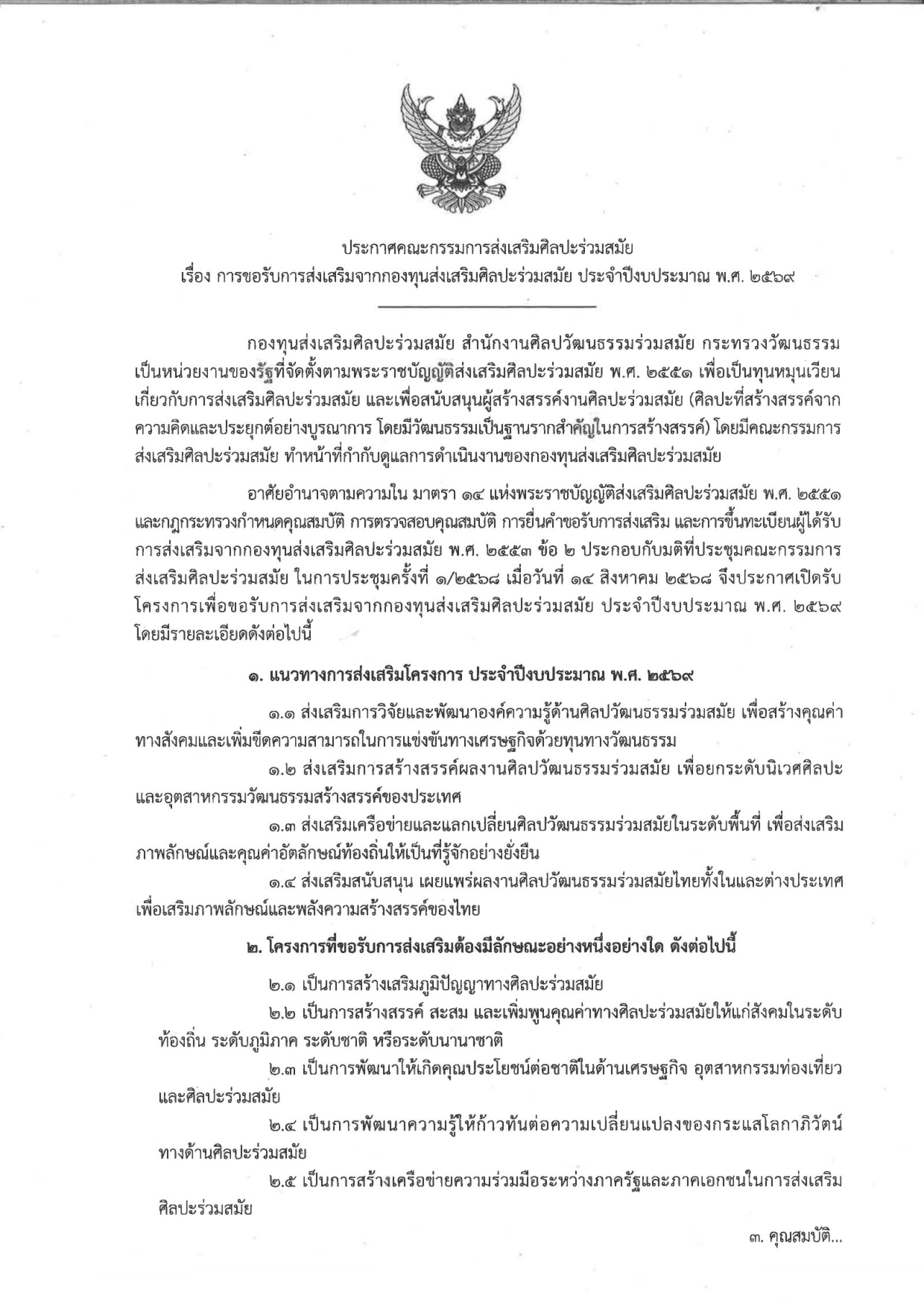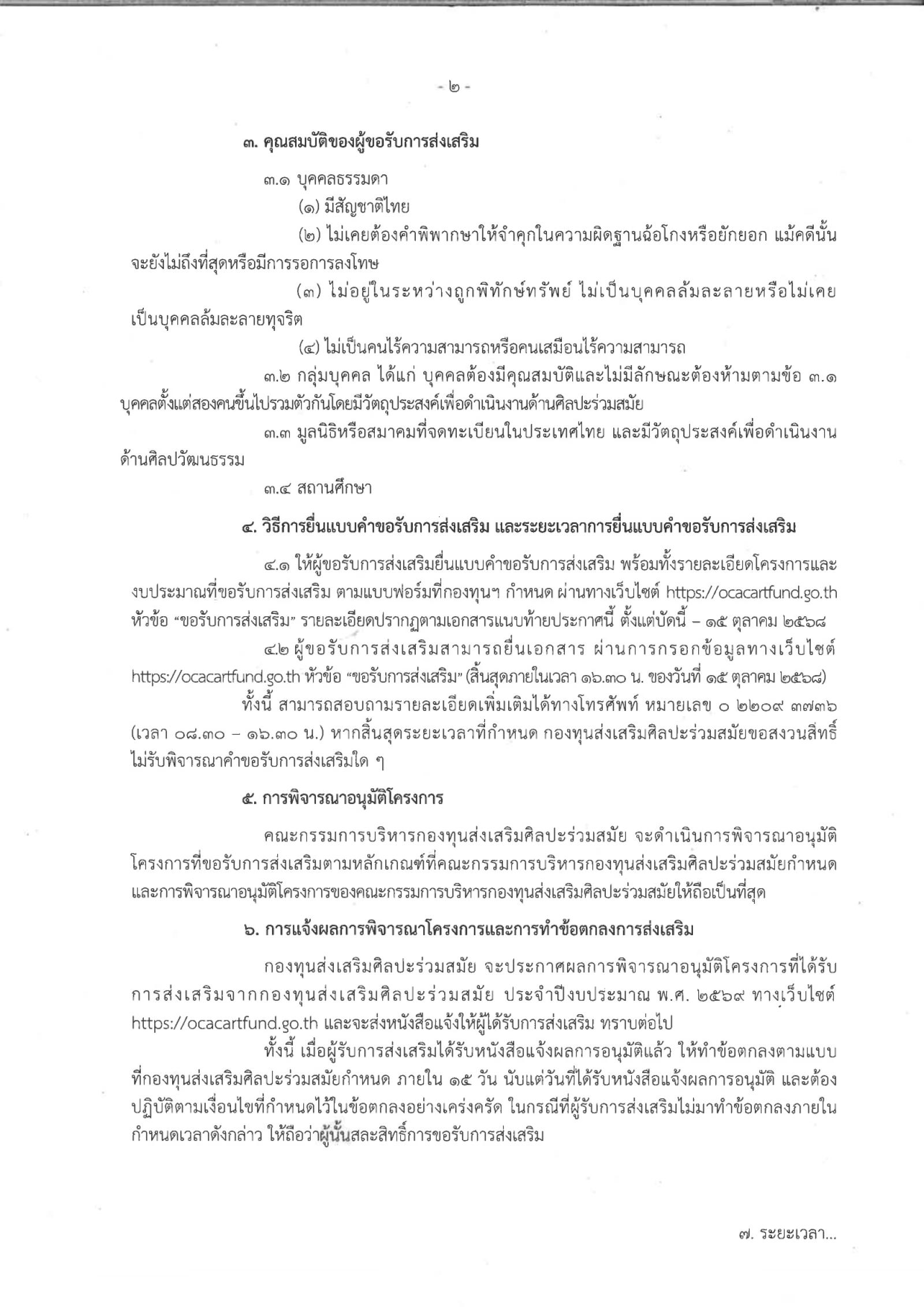 กองทุนส่งเสริมศิลปะร่วมสมัย เปิดรับโครงการ ตั้งแต่วันนี้ - 15 ตุลาคม 2568????การขอรับการส่งเสริมจากกองทุนส่งเสริมศิลปะร่วมสมัย ประจำปีงบประมาณ พ.ศ. 2569????????สามารถยื่นขอรับการส่งเสริม โดยการ ???? กรอกข้อมูลผ่านทางเว็บไซต์ https://ocacartfund.go.th/หัวข้อ “ ขอรับการส่งเสริม” (สิ้นสุดภายในเวลา 16.30 น. ของวันที่ 15 ตุลาคม 2568)❗️ทั้งนี้❗️สามารถสอบถามรายละเอียดเพิ่มเติมได้ทางโทรศัพท์ หมายเลข 0 2209 3736 (เวลา 08.30 – 16.30 น. ในวันและเวลาราชการ) #โครงการที่ได้รับการส่งเสริมจากกองทุนส่งเสริมศิลปะร่วมสมัย #กองทุนส่งเสริมศิลปะร่วมสมัย