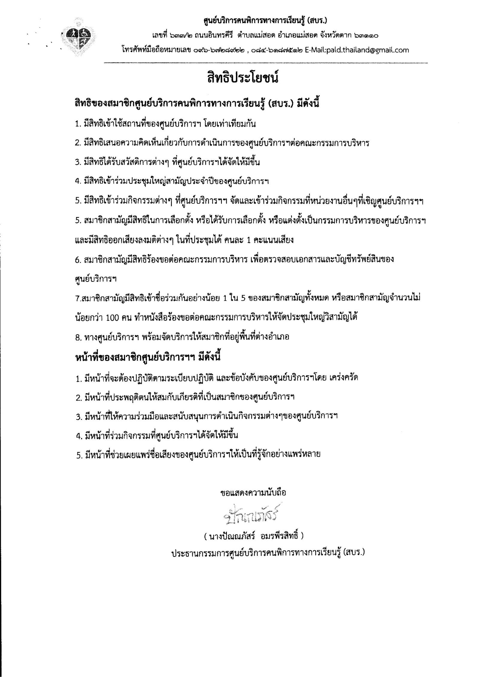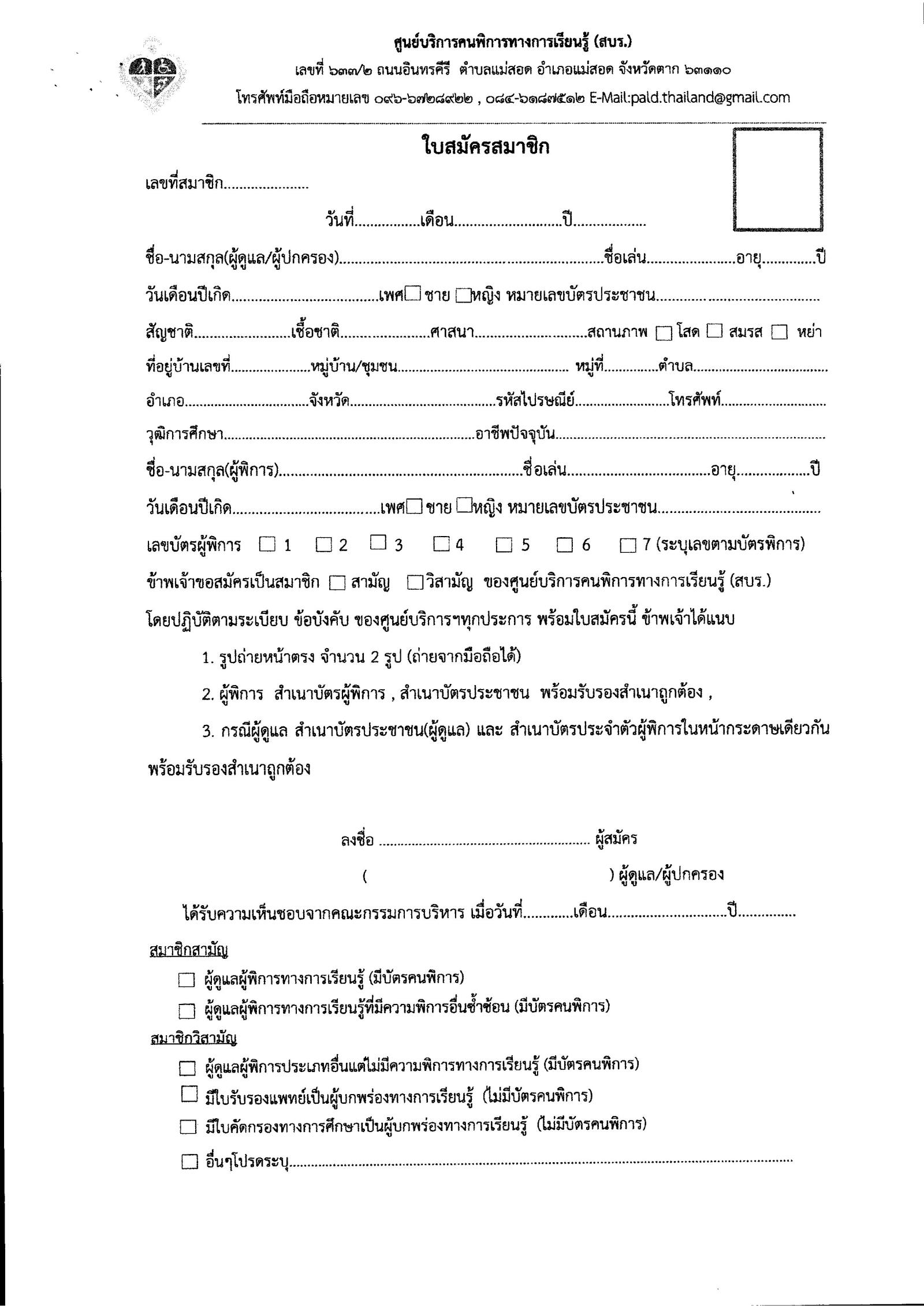 ด้วยเทศบาลนครแม่สอด ฝ่ายสังคมสงเคราะห์ กองสวัสติการสังคม ขอประชาสัมพันธ์ศูนย์บริการคนพิการทางการเรียนรู้ (สบร.) ให้กับครอบครัวคนพิการทางการเรียนรู้ ประเภท 6 ในการขอรับบริการ เพื่อเป็นการให้บริการข้อมูลข่าวสารด้านสิทธิประโยชน์ การช่วยเหลือด้านการดำเนินชีวิตและอาชีพ ฟื้นฟูสมรรถภาพการจัดกิจกรรมเสริมทักษะการเรียนรู้ เทคนิคการดูแล ส่งเสริมและพัฒนาศักยภาพของคนพิการตามความเหมาะสม รวมถึงการปรับกิจกรรมทางการเรียนรู้ให้สอดคล้องกับศักยภาพและความเหมาะสมของคนพิการ เพื่อให้เกิดการเรียนรู้ได้อย่างมีคุณภาพ รวมถึงครอบครัวผู้ดูแลคนพิการจะได้รับข้อมูล ความรู้และแนวทางในการดูแล ได้อย่างถูกต้อง อีกทั้งยังสามารถสมัครเป็นสมาชิกของศูนย์ ฯ ซึ่งจะได้รับบริการและสิทธิประโยชน์ได้อย่างทั่วถึง อีกทั้งขอเชิญชวนผู้ปกครองของผู้ที่มีบัตรประจำตัวคนพิการทางการเรีนรู้ประเภท 6 ที่ได้รับการคัดกรองทางการศึกษาว่ามีความบกพร่องทางการเรียนรู้ ให้เข้ามาใช้บริการที่ศูนย์บริการ โดยไม่เสียค่าใช้จ่ายแต่อย่างใด อ่านและดาวน์โหลดรายละเอียดเพิ่มเติมได้ตามเอกสารที่แนบมาด้านล่างนี้