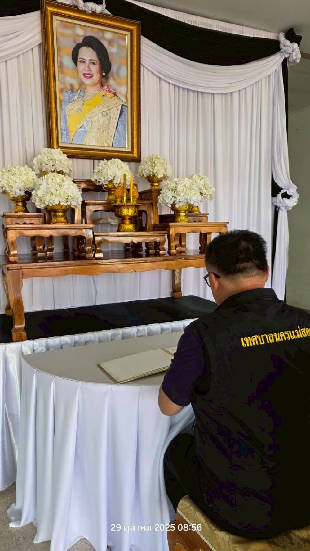 นายกุล เครือวีระ นายกเทศมนตรีนครแม่สอด พร้อมด้วย คณะผู้บริหาร สมาชิกสภาเทศบาล รองปลัดเทศบาลนครแม่สอด หัวหน้าส่วนราชการ และเจ้าหน้าที่เทศบาลนครแม่สอด ร่วมลงนามถวายความอาลัย และถวายสักการะหน้าพระฉายาลักษณ์ สมเด็จพระนางเจ้าสิริกิติ์ พระบรมราชินีนาถ พระบรมราชชนนีพันปีหลวง ด้วยสำนึกในพระมหากรุณาธิคุณอย่างหาที่สุดมิได้ โดยจัดทำสมุดลงนามถวายความอาลัย และเปิดให้ประชาชนได้ลงนามถวายอาลัย สมเด็จพระนางเจ้าสิริกิติ์ พระบรมราชินีนาถ พระบรมราชชนนีพันปีหลวง ได้ตั้งแต่วันที่ 29 ตุลาคม 2568 เป็นต้นไป ในวันและเวลาราชการ