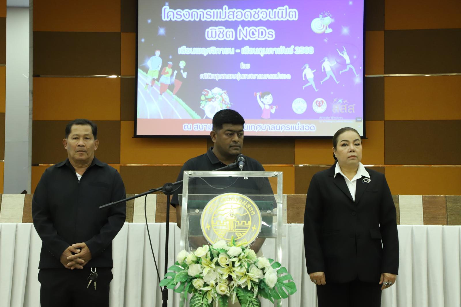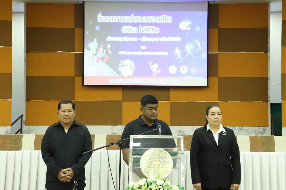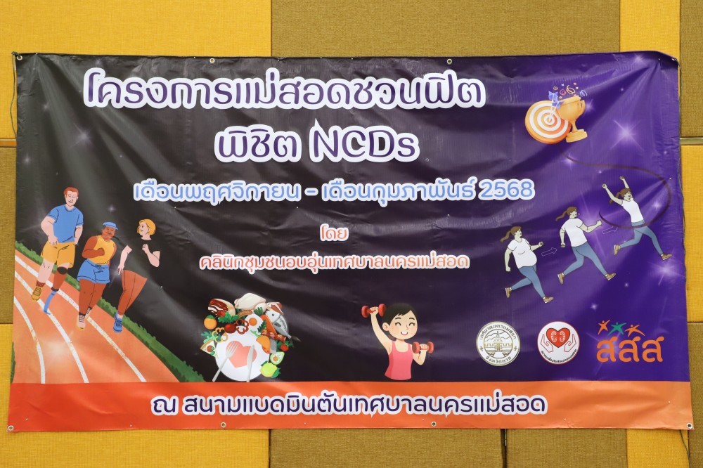 นายกุล เครือวีระ นายกเทศมนตรีนครแม่สอด มอบหมายให้ นายอภิปัตย์ อุปการะ รองนายกเทศมนตรีนครแม่สอด พร้อมด้วย นายจิรวัฒน์ มงคลจุฑาเศรษฐ รองนายกเทศมนตรีนครแม่สอด ที่ปรึกษานายกเทศมนตรี สมาชิกสภาเทศบาล หัวหน้าส่วนราชการ และเจ้าหน้าที่คลินิกอบอุ่น กองสาธารณสุขและสิ่งแวดล้อม เข้าร่วมพิธีเปิดโครงการ “แม่สอดชวนฟิต พิชิต NCDs” โครงการนี้มีวัตถุประสงค์เพื่อส่งเสริมให้ประชาชนในเขตเทศบาลนครแม่สอดโดยเฉพาะกลุ่มเสี่ยงโรคไม่ติดต่อเรื้อรัง มีความรู้และแรงจูงใจในการปรับเปลี่ยนพฤติกรรมสุขภาพ ทั้งด้านโภชนาการและการออกกำลังกาย เพื่อให้สามารถลดความเสี่ยงของโรคเรื้อรังและมีสุขภาพแข็งแรงอย่างยั่งยืนการดำเนินงานของโครงการครอบคลุมระยะเวลา 6 เดือน ตั้งแต่ เดือนตุลาคม 2568 ถึง เดือนมีนาคม 2569 ซึ่งกิจกรรมในวันนี้จะมีทั้งการตรวจสุขภาพเบื้องต้น การฟังบรรยายให้ความรู้ เกี่ยวกับการดูแลสุขภาพแบบองค์รวมและการประเมินสมรรถภาพทางกาย เพื่อใช้เป็นข้อมูลตั้งตันในการพัฒนาศักยภาพสุขภาพของประชาชนในระยะต่อไป