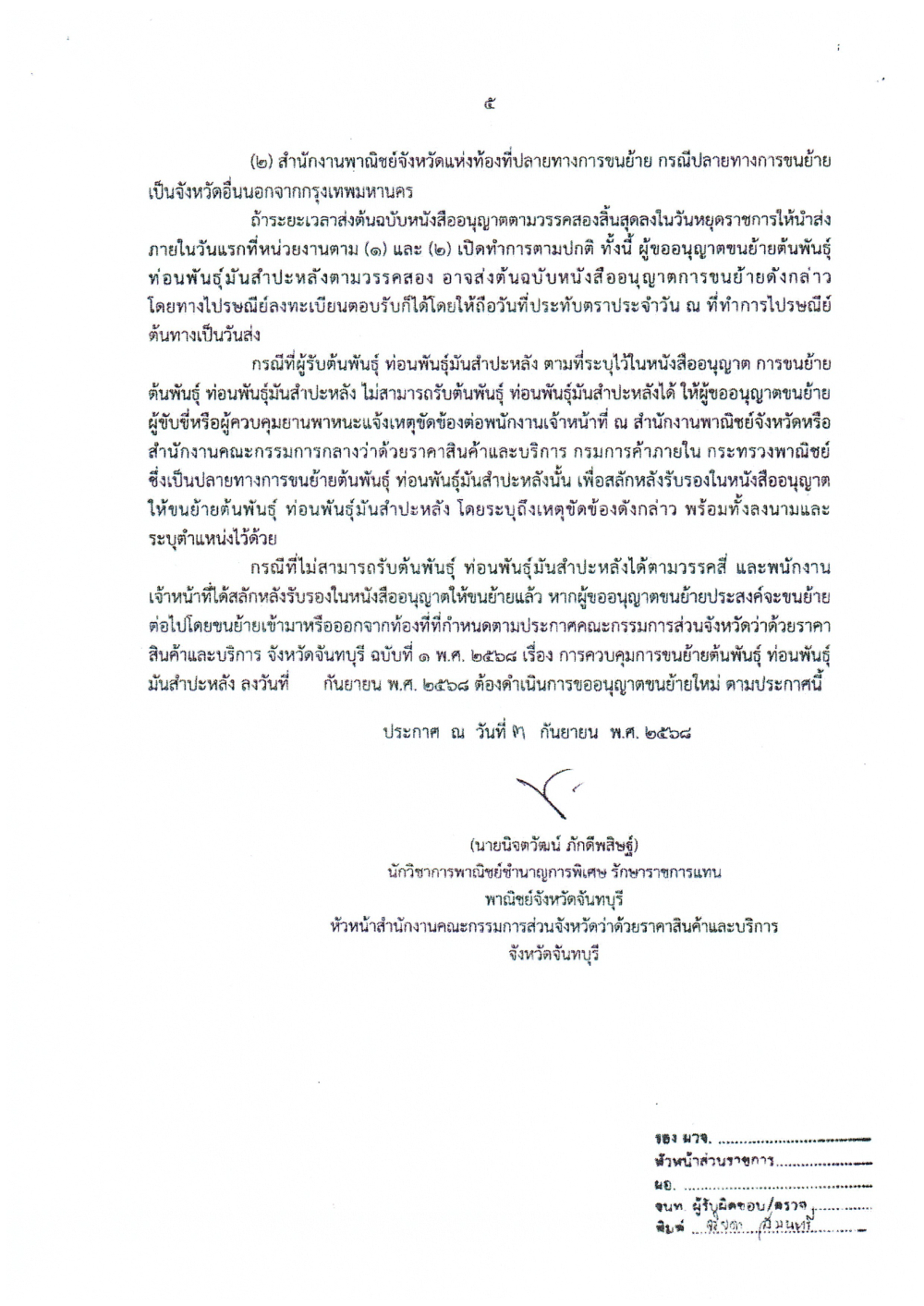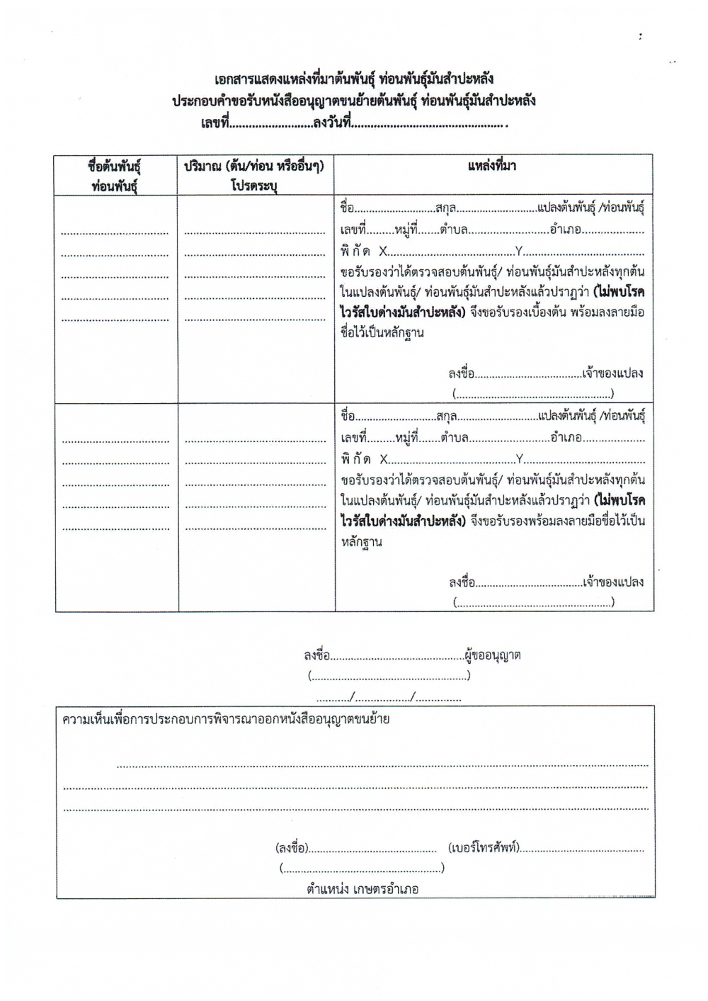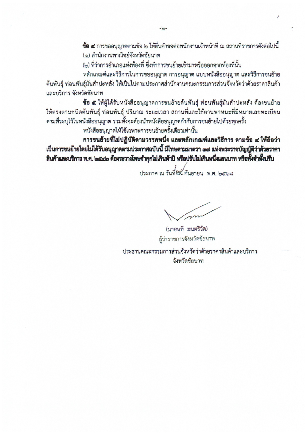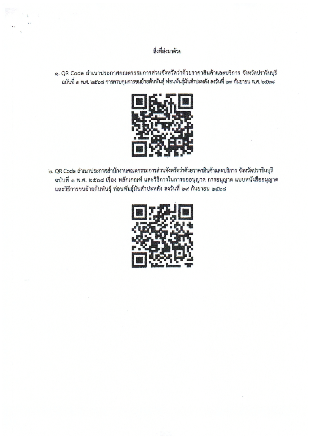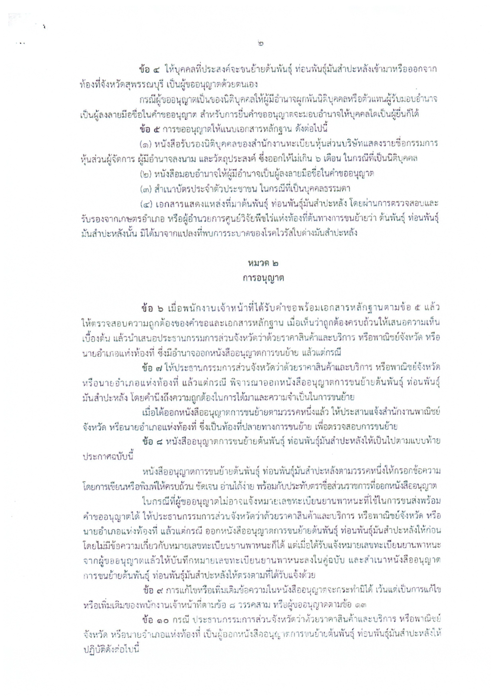 ปราจีนบุรี และจังหวัดสุพรรณบุรี ได้ออกประกาศคณะกรรมการส่วนจังหวัดว่าด้วยราคาสินค้าและบริการ ฉบับที่ 1 พ.ศ. 2568 เรื่อง การควบคุมการขนย้ายต้นพันธุ์ ท่อนพันธุ์มันสำปะหลัง และประกาศสำนักงานคณะกรรมการส่วนจังหวัดว่าด้วยราคาสินค้าและบริการ ฉบับที่ 1 พ.ศ. 2568 เรื่อง หลักเกณฑ์และวิธีการในการอนุญาต แบบหนังสืออนุญาต และวิธีการขนย้ายต้นพันธุ์ ท่อนพันธุ์มันสำปะหลังโดยกำหนดให้ผู้ที่จะทำการขนย้ายต้นพันธุ์ ท่อนพันธุ์มันสำปะหลัง อย่างใดอย่างหนึ่งหรือทั้งสองอย่างรวมกันเข้ามาหรือออกต้องขออนุญาตขนย้ายก่อนทุกครั้ง จึงแจ้งให้เกษตรกรผู้ปลูกมันลำปะหลังและผู้ที่เกี่ยวข้องรับทราบ รายละเอียดประกาศตามลิ้งค์ด้านล่างนี้