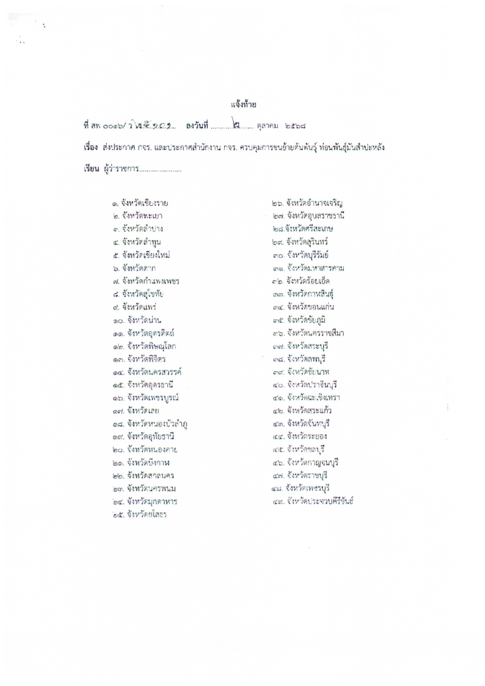 ด้วยจังหวัดตากแจ้งว่า จังหวัดจันทบุรี จังหวัดราชบุรี จังหวัดนครปฐม จังหวัดชัยนาท จังหวัด