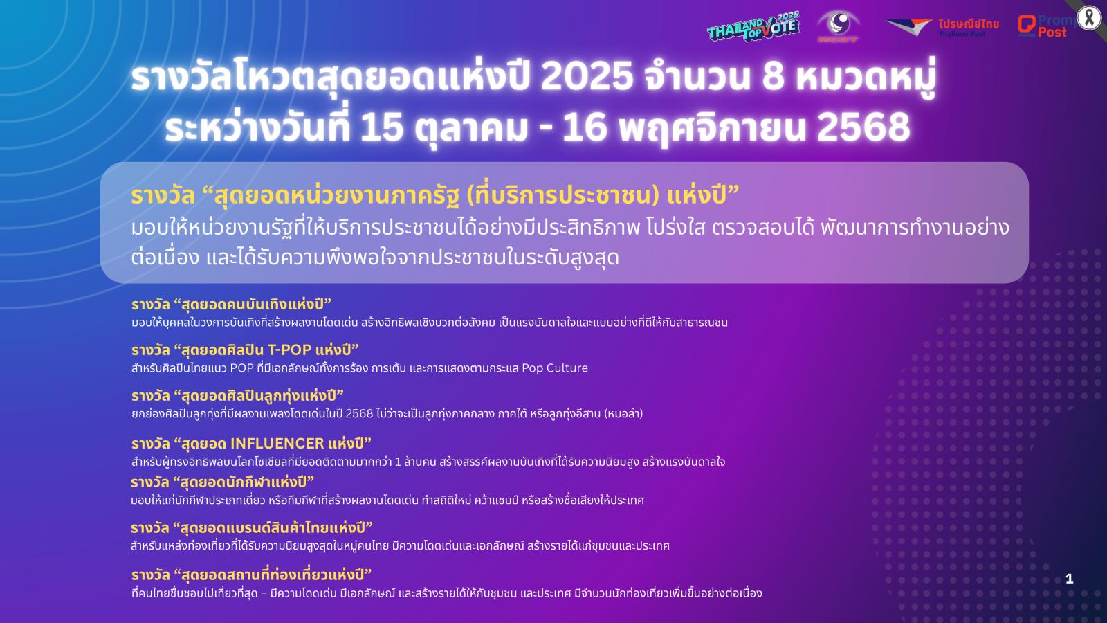 มาจากโหวตของประชนทั่วประเทศ ผ่านแอปพลิเคชัน Prompt Post ระหว่างวันที่ 15 ตุลาคม 2568 - 11 มกราคม 2569